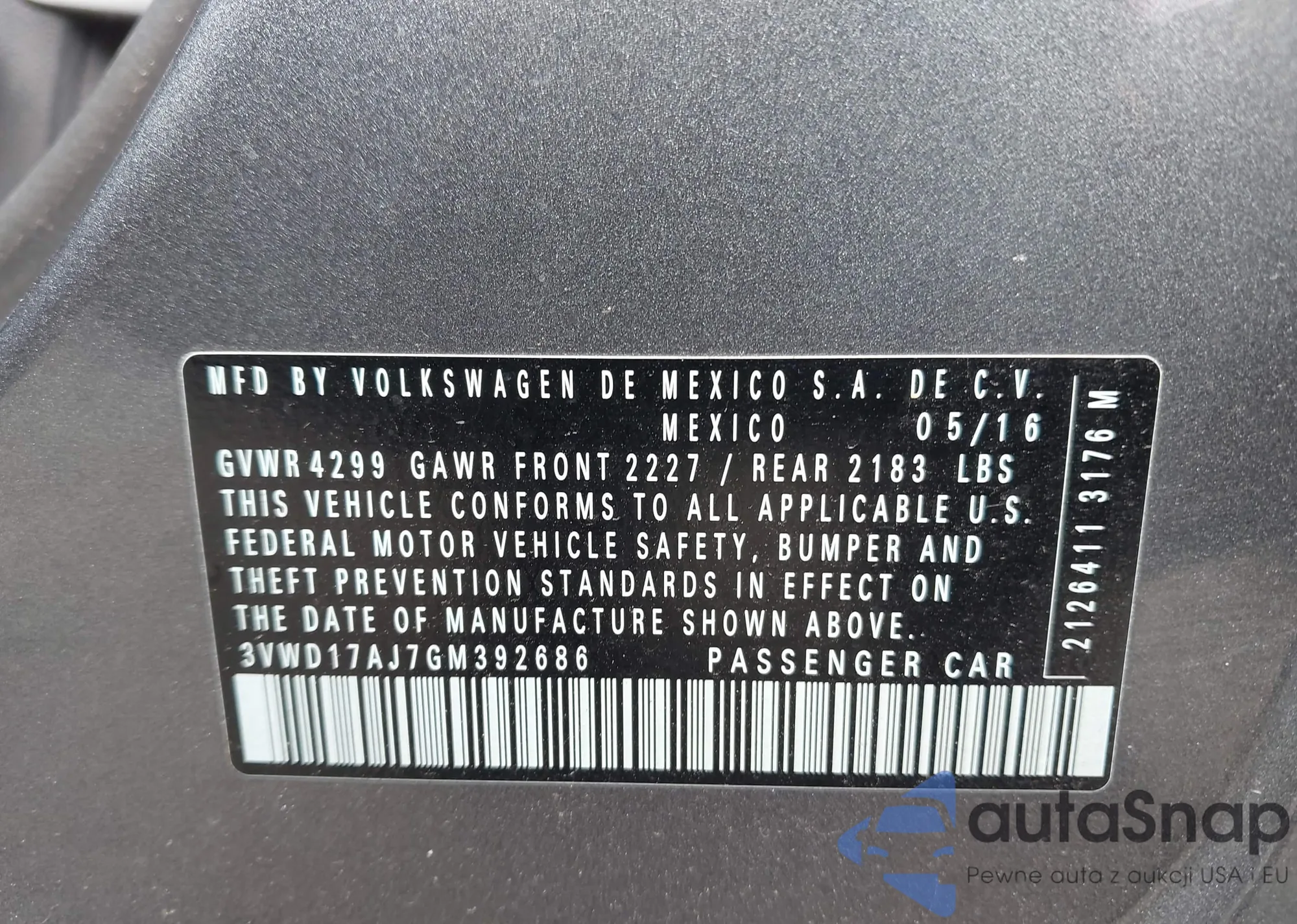 VIN: 3VWD17AJ7GM392686
