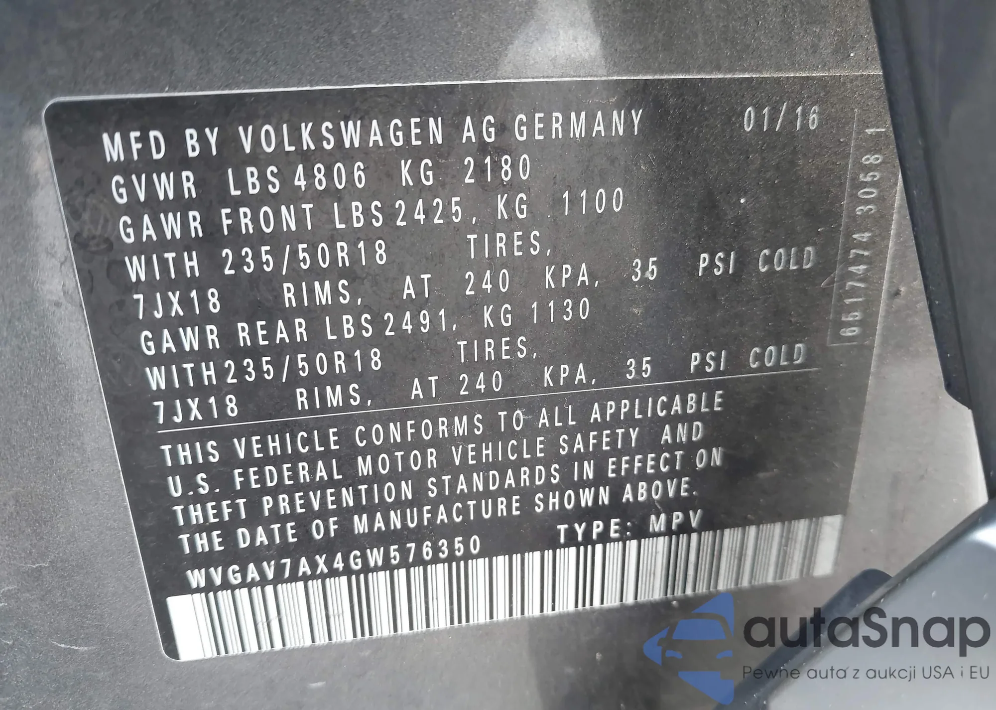 VIN: WVGAV7AX4GW576350