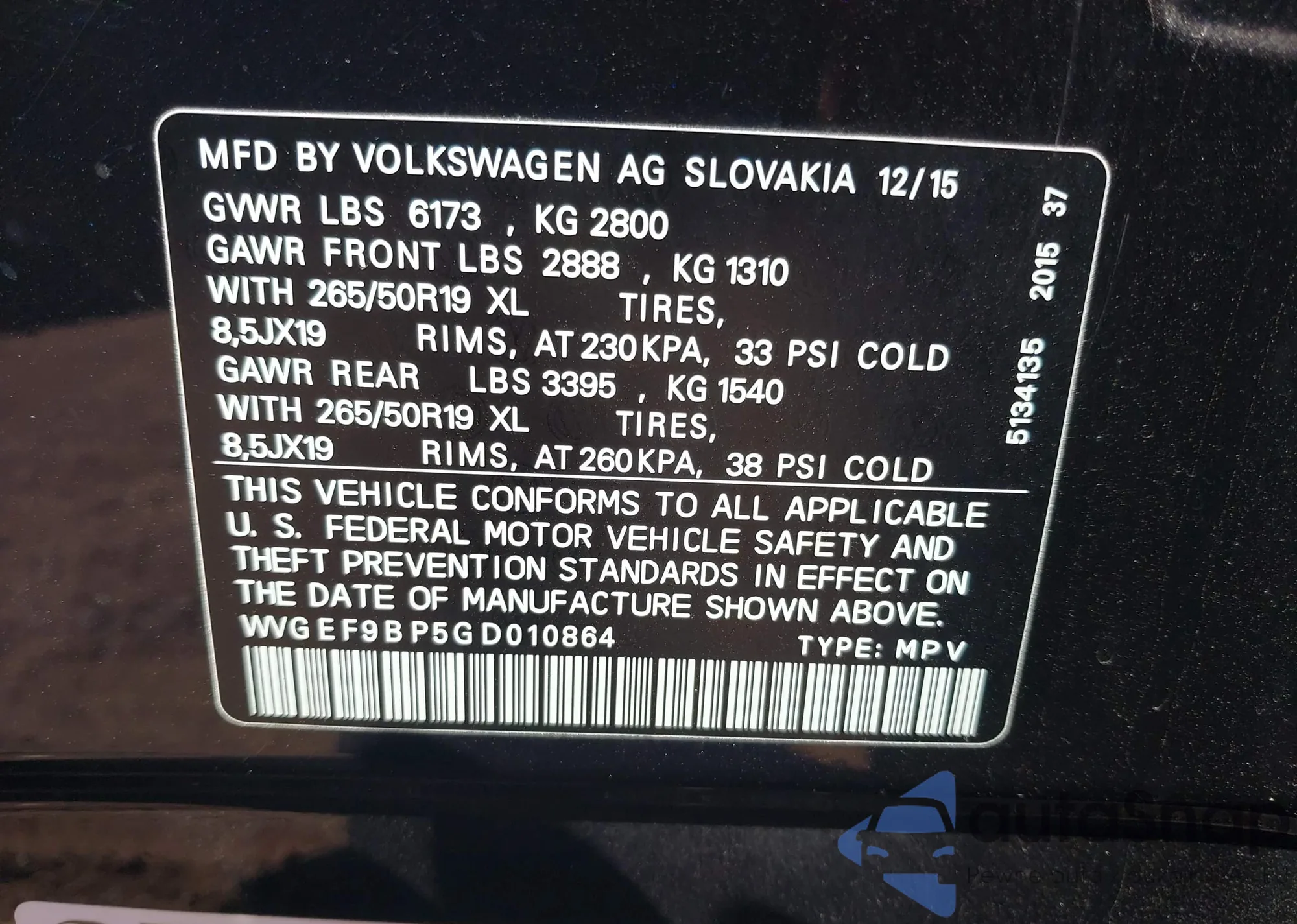 VIN: WVGEF9BP5GD010864