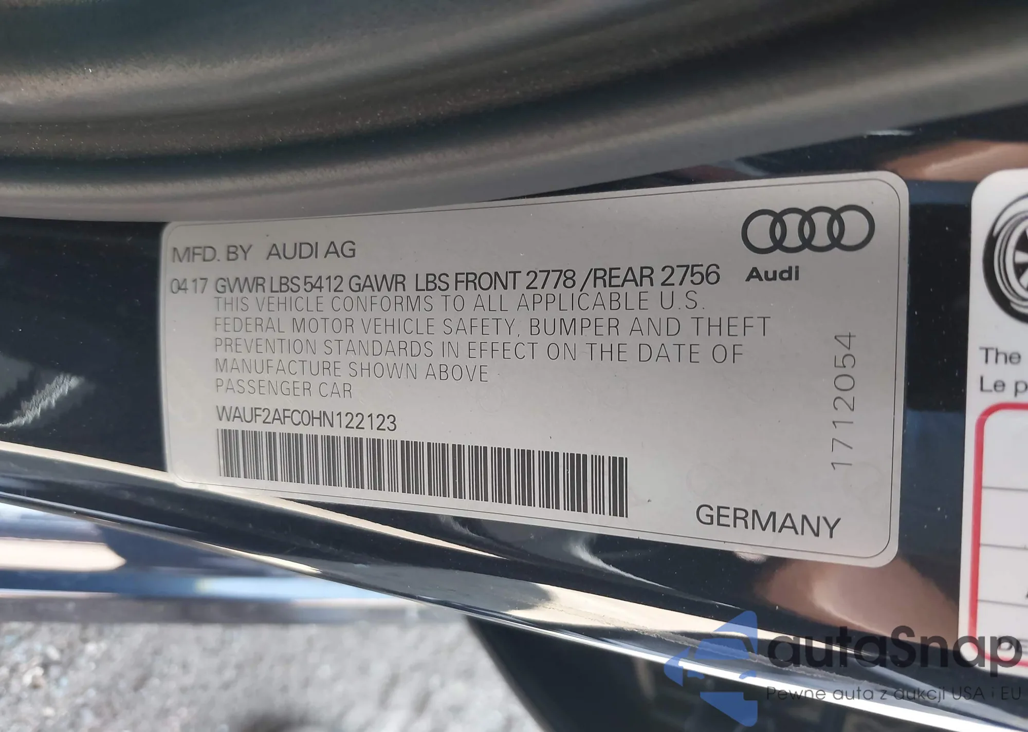 • VIN: WAUF2AFC0HN122123