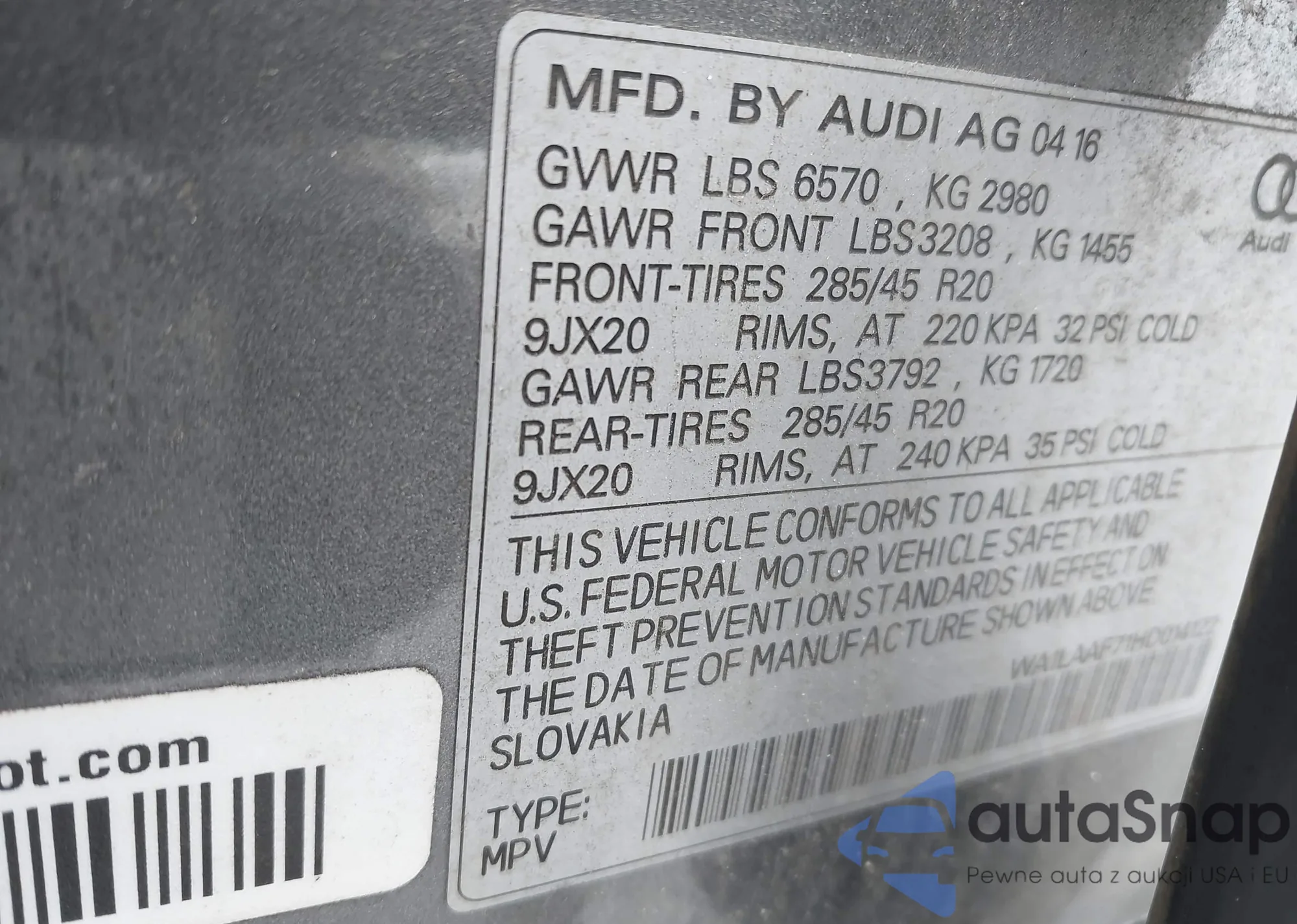 • VIN: WA1LAAF71HD014122