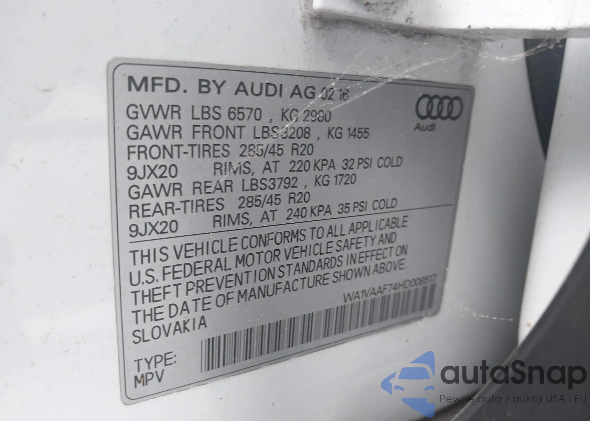 • VIN: WA1VAAF74HD008517