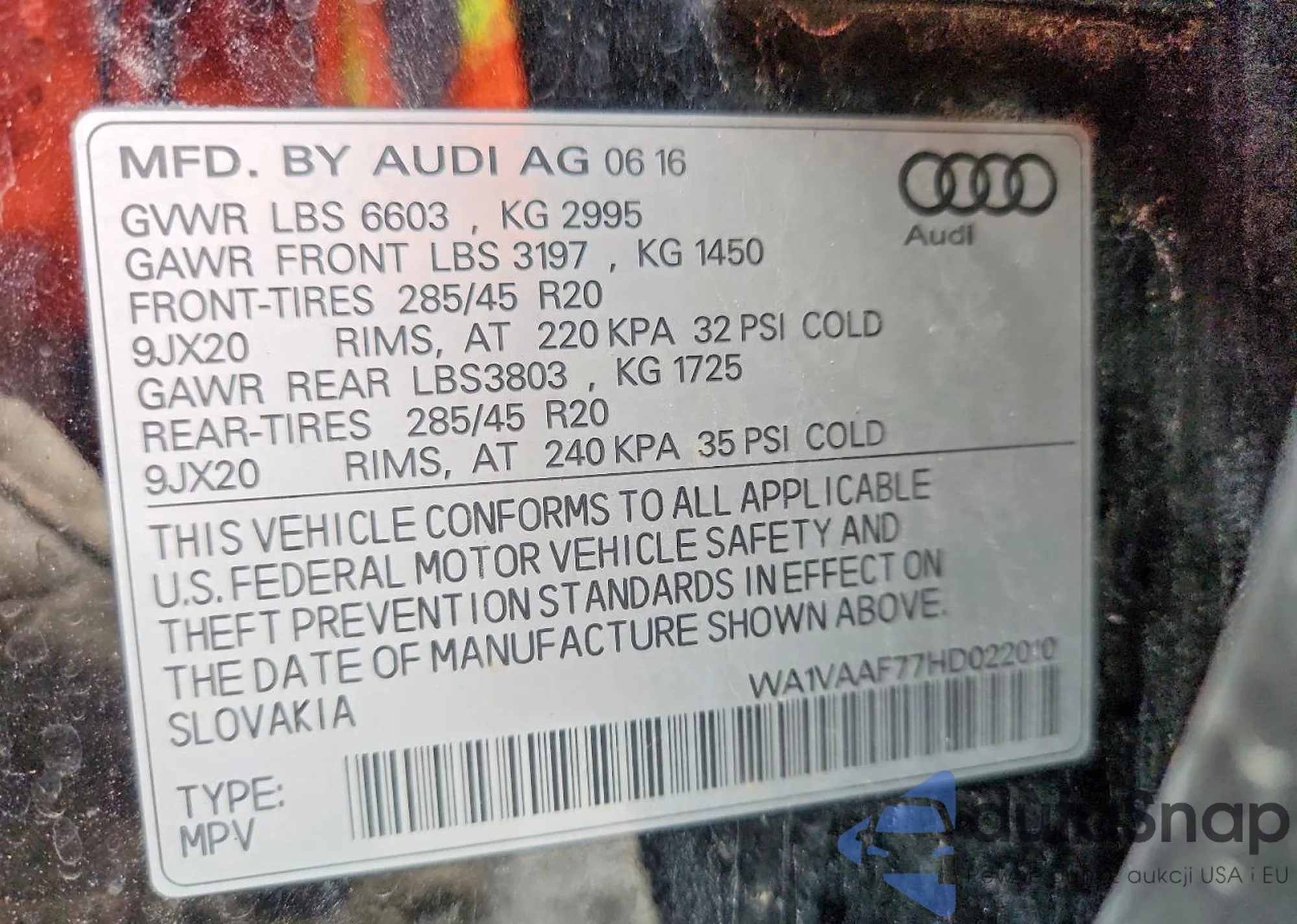 VIN: WA1VAAF77HD022010