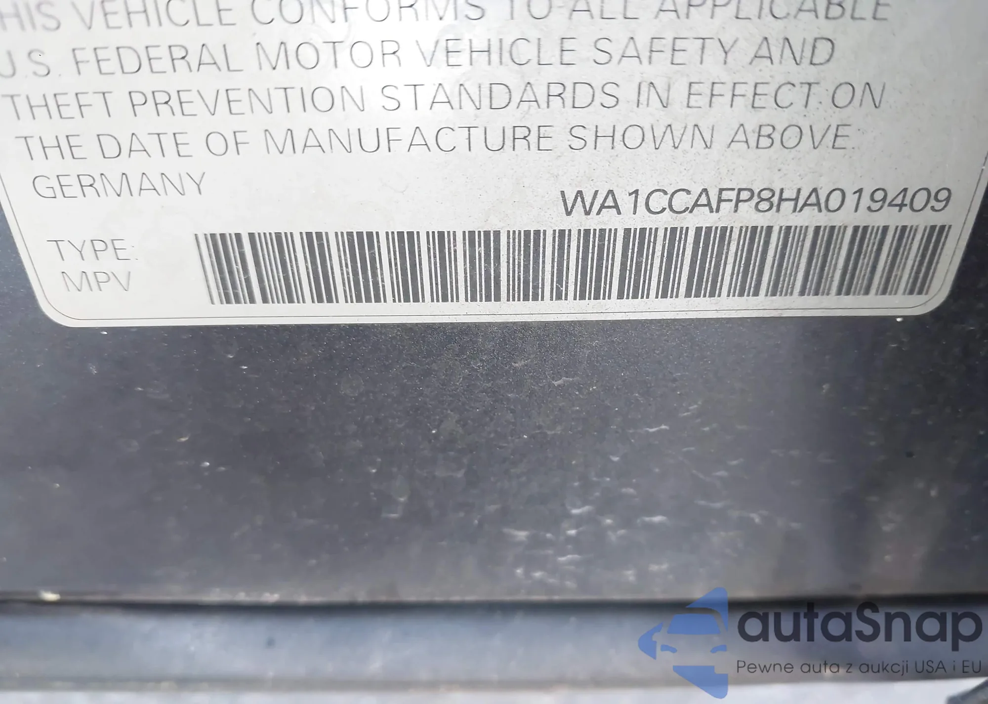 • VIN: WA1CCAFP8HA019409