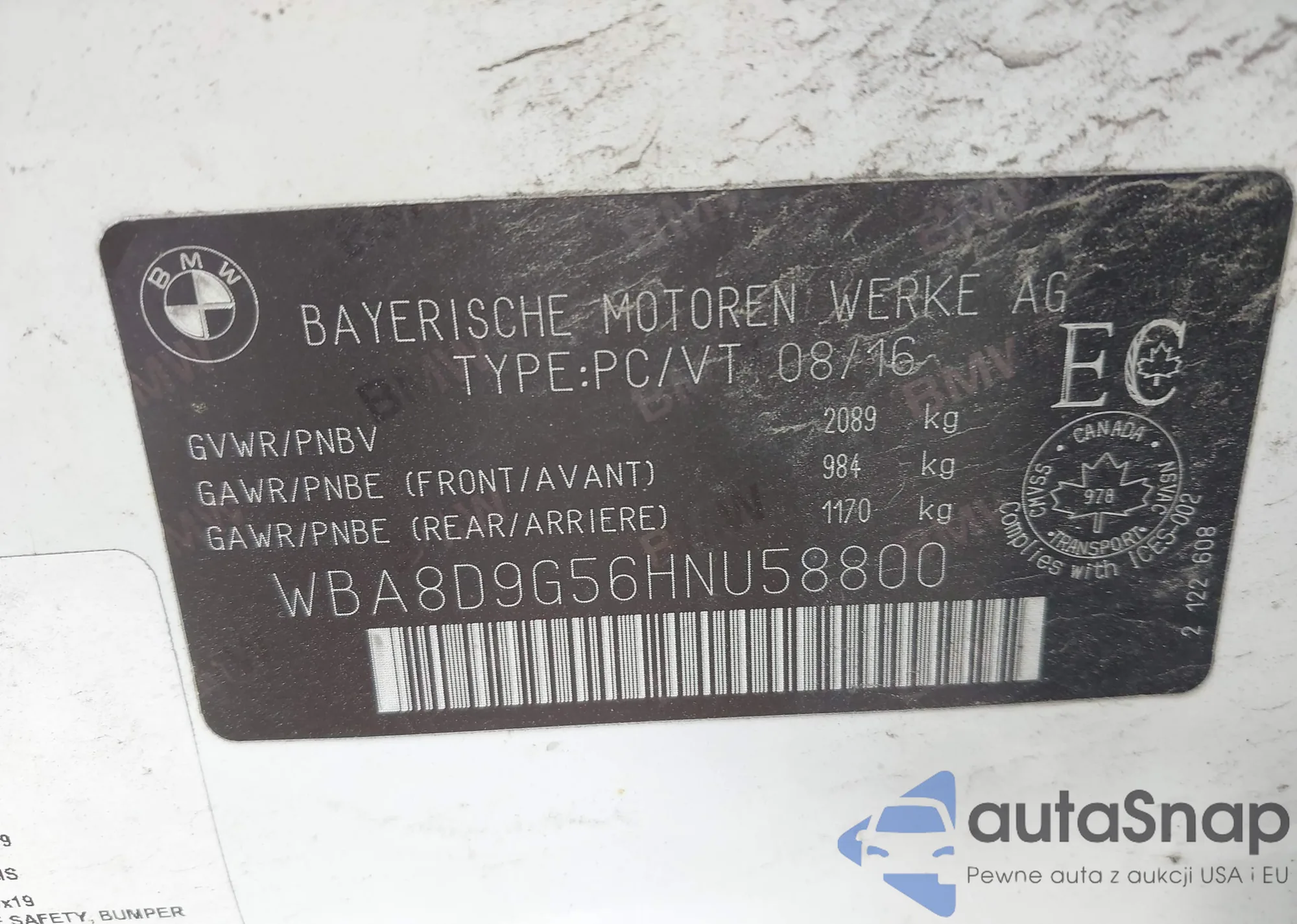 VIN: WBA8D9G56HNU58800