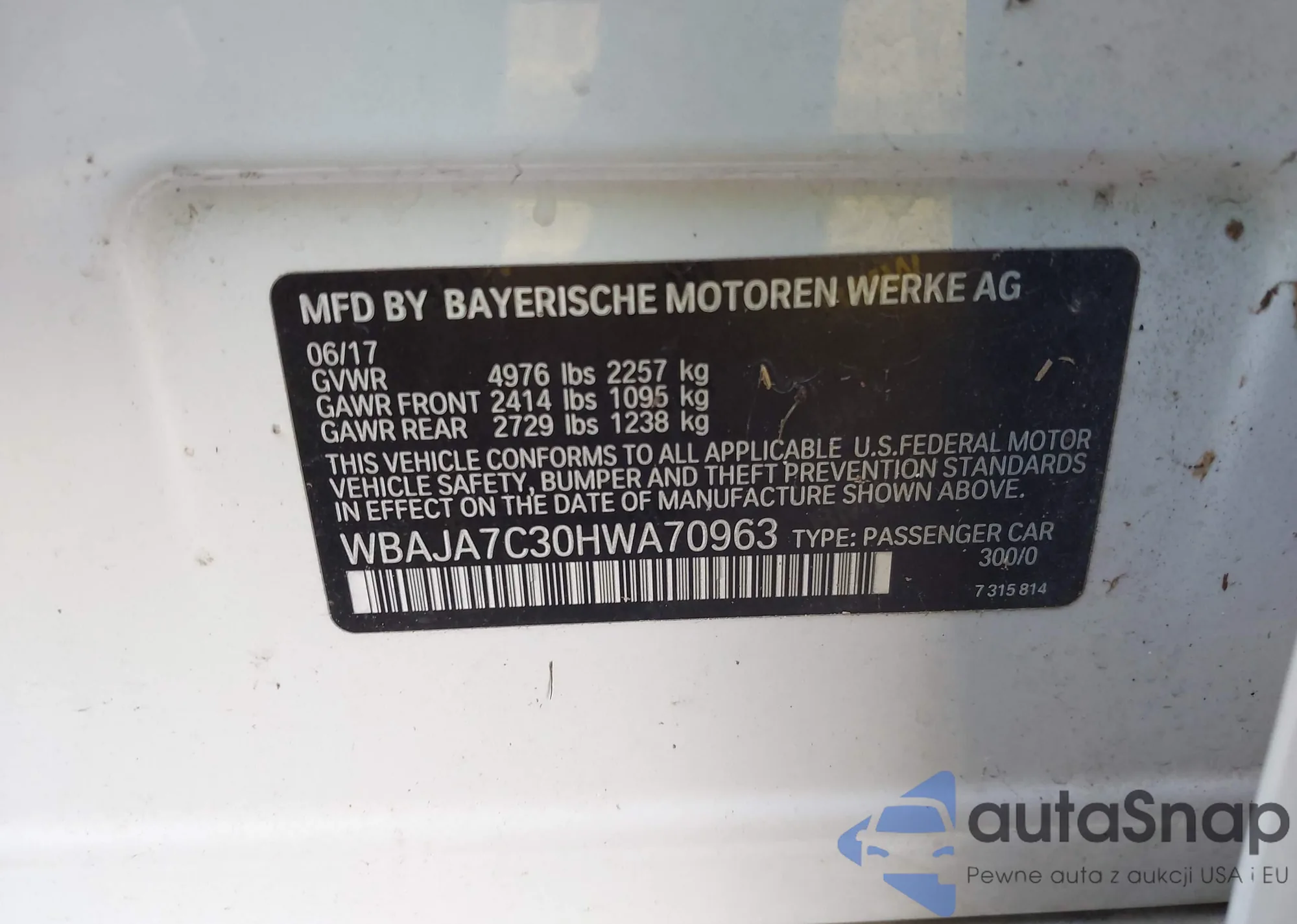 VIN: WBAJA7C30HWA70963