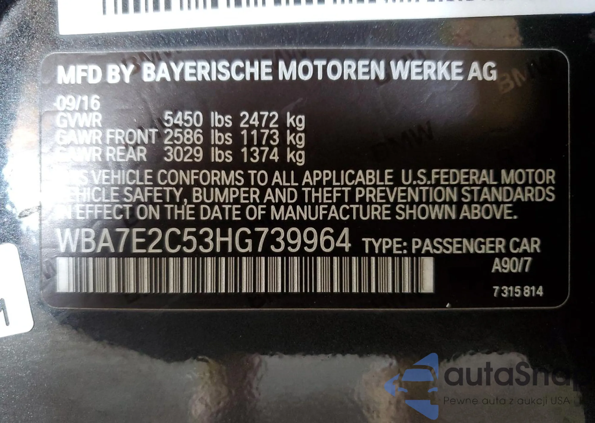 VIN: WBA7E2C53HG739964