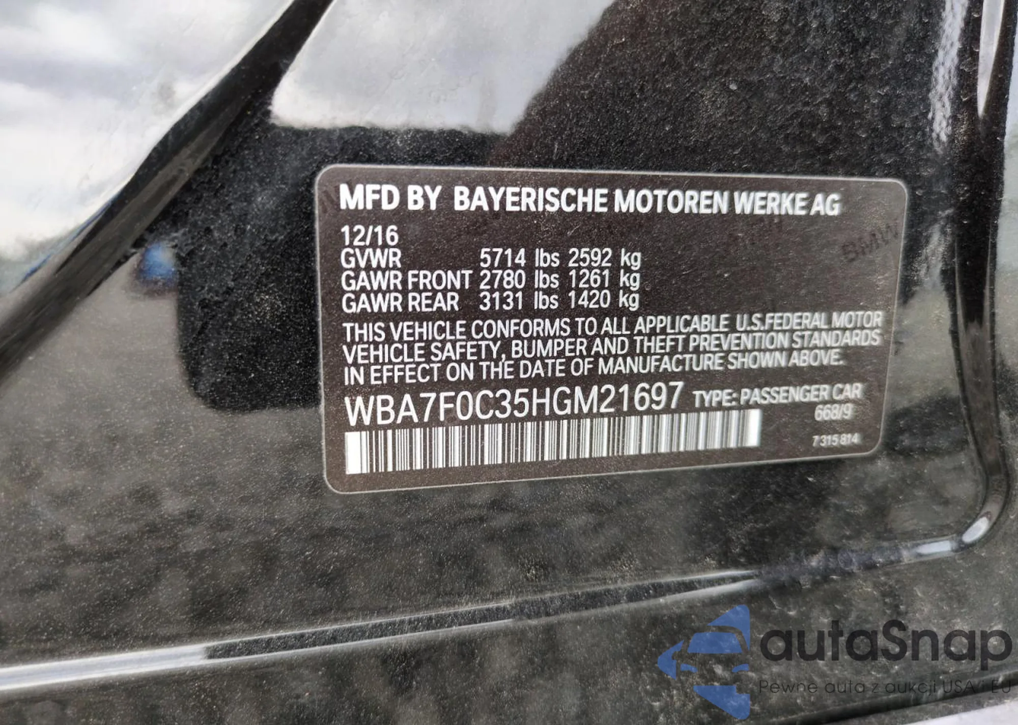 VIN: WBA7F0C35HGM21697