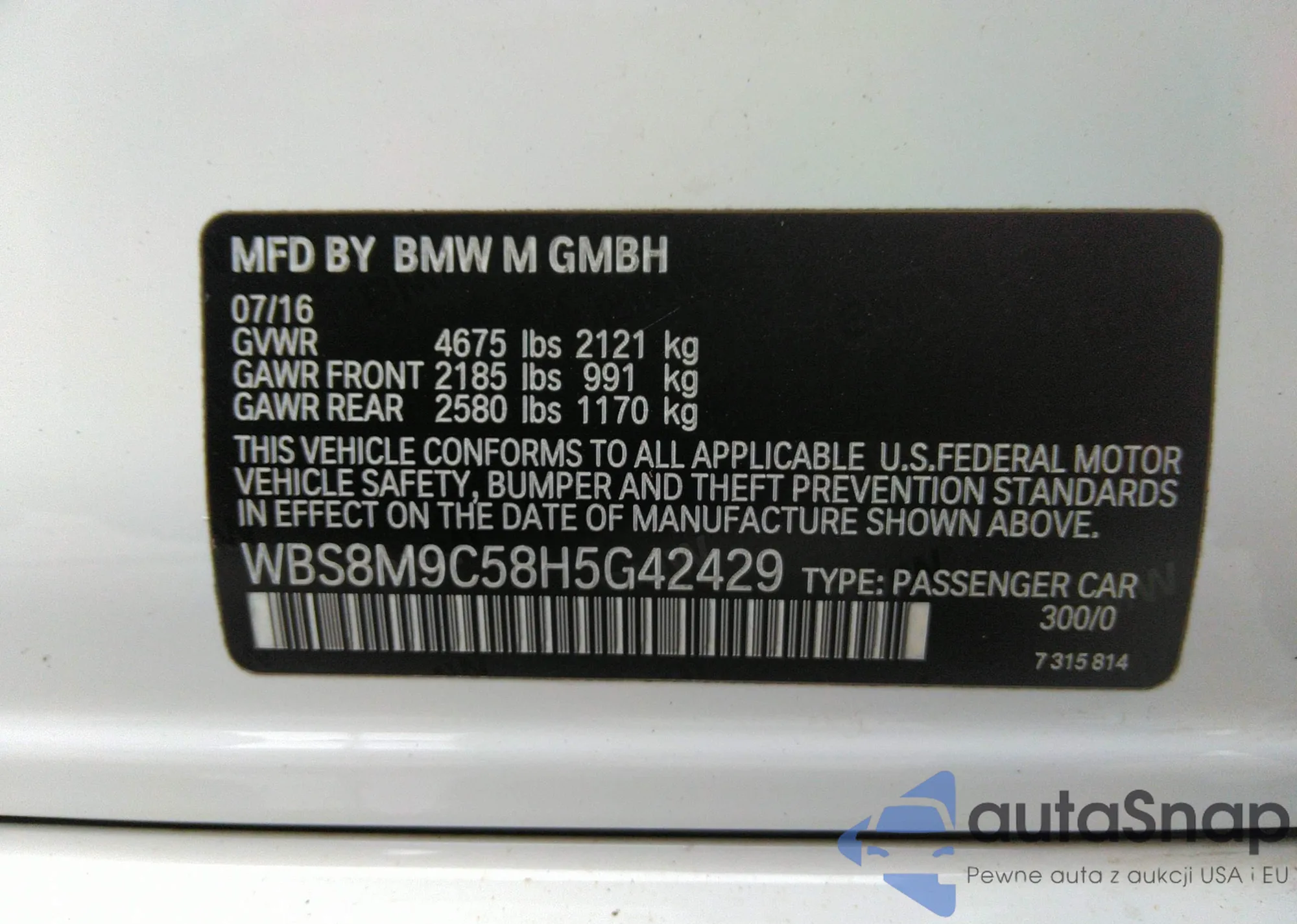 VIN: WBS8M9C58H5G42429