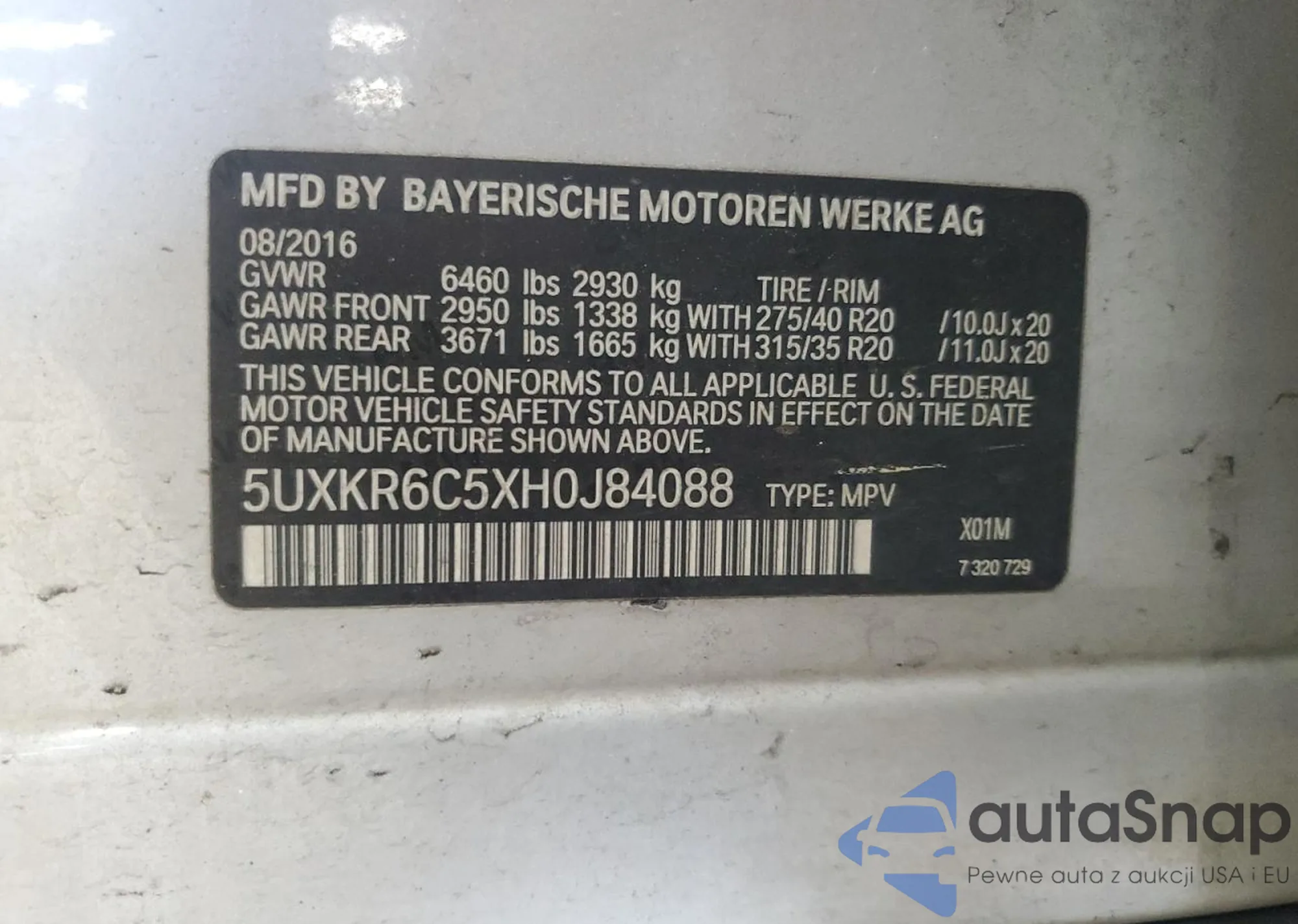 VIN: 5UXKR6C5XH0J84088