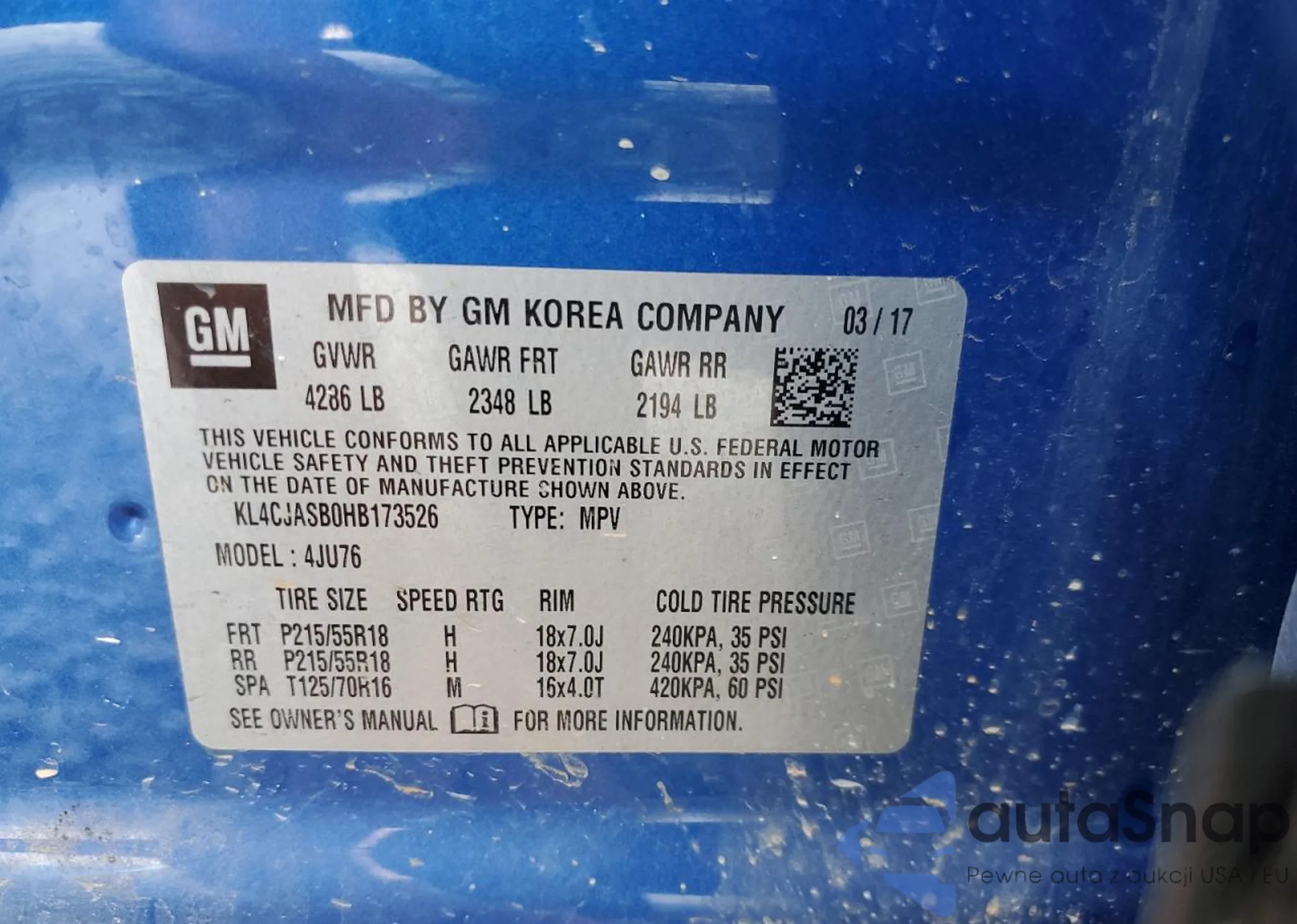 • VIN: KL4CJASB0HB173526