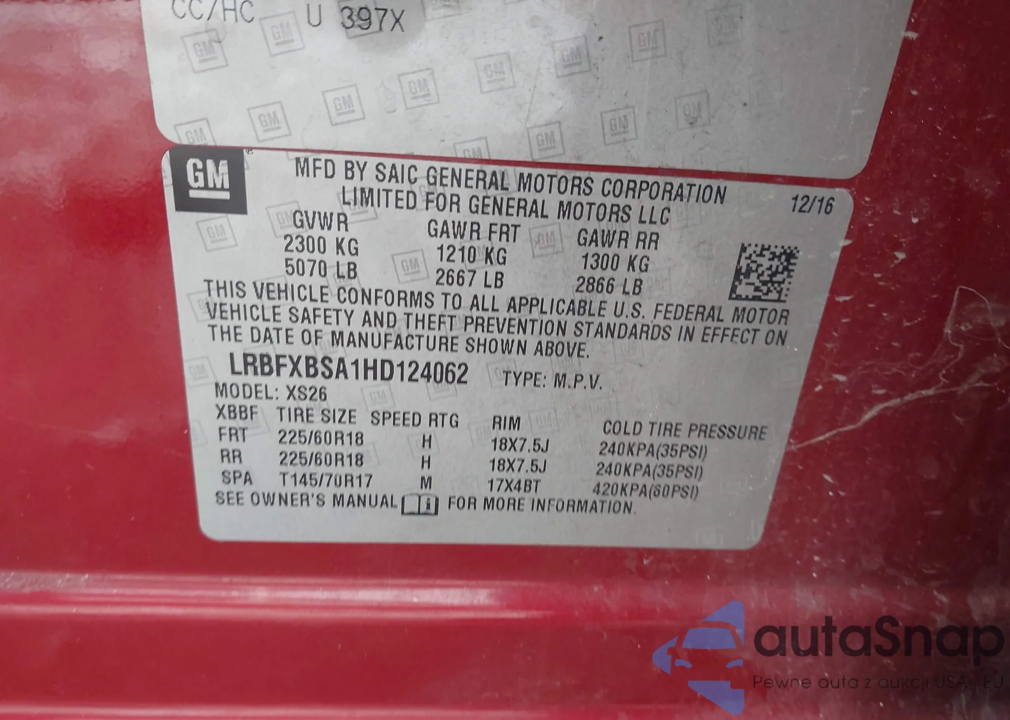 The car Buick Envision 2017 (VIN LRBFXBSA1HD124062) has already been auctioned 1 times and/or is sold by an unverified seller. We recommend checking the Carfax report and confirming registration possibilities before purchase.