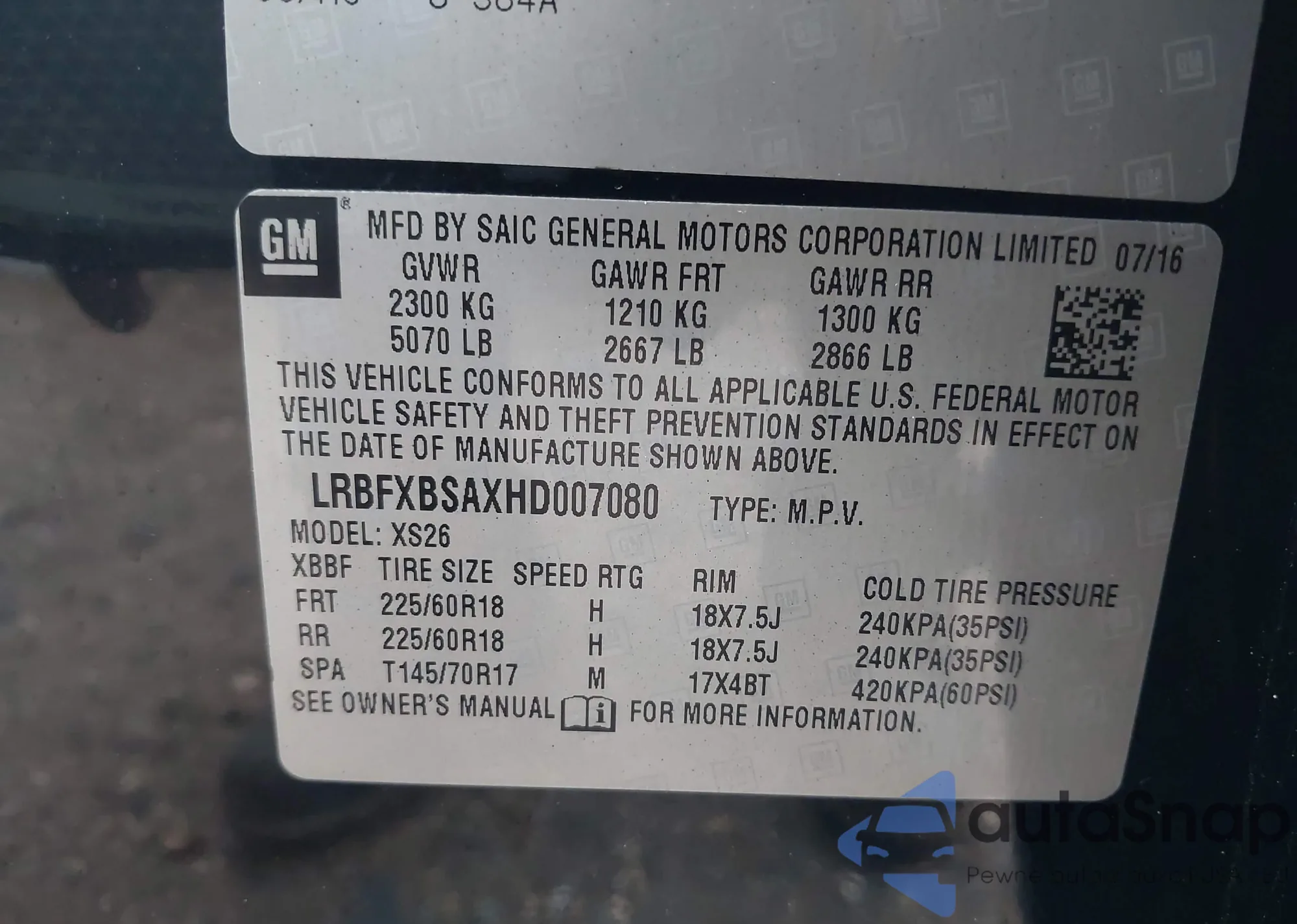 • VIN: LRBFXBSAXHD007080