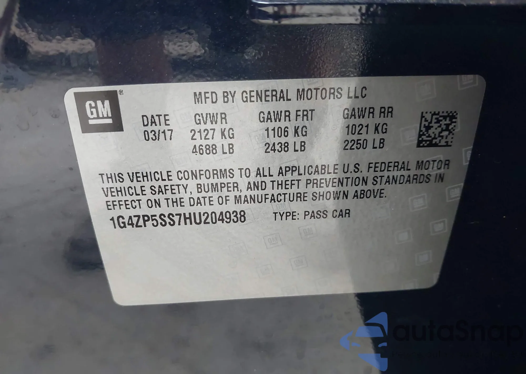 VIN: 1G4ZP5SS7HU204938