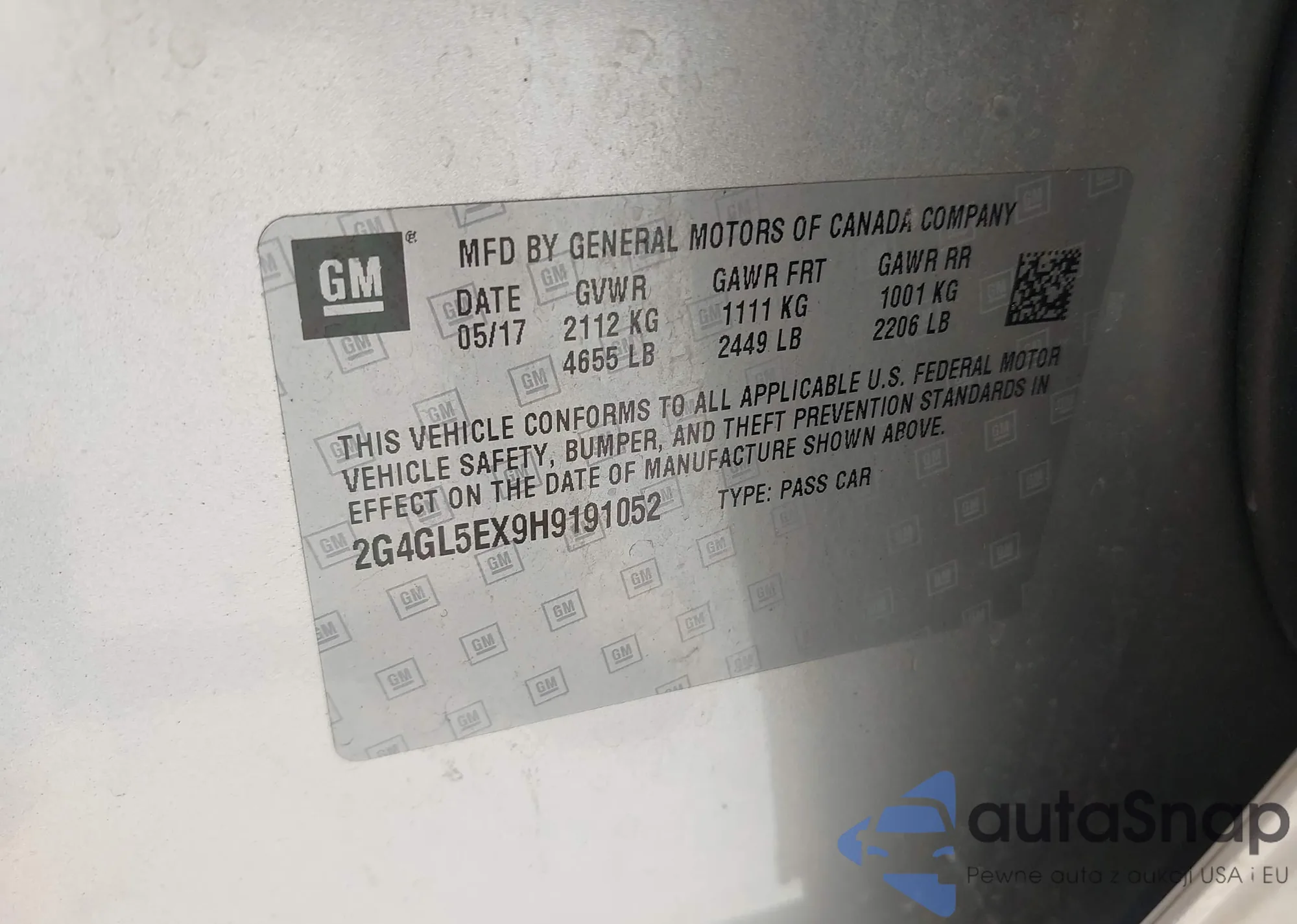 • VIN: 2G4GL5EX9H9191052