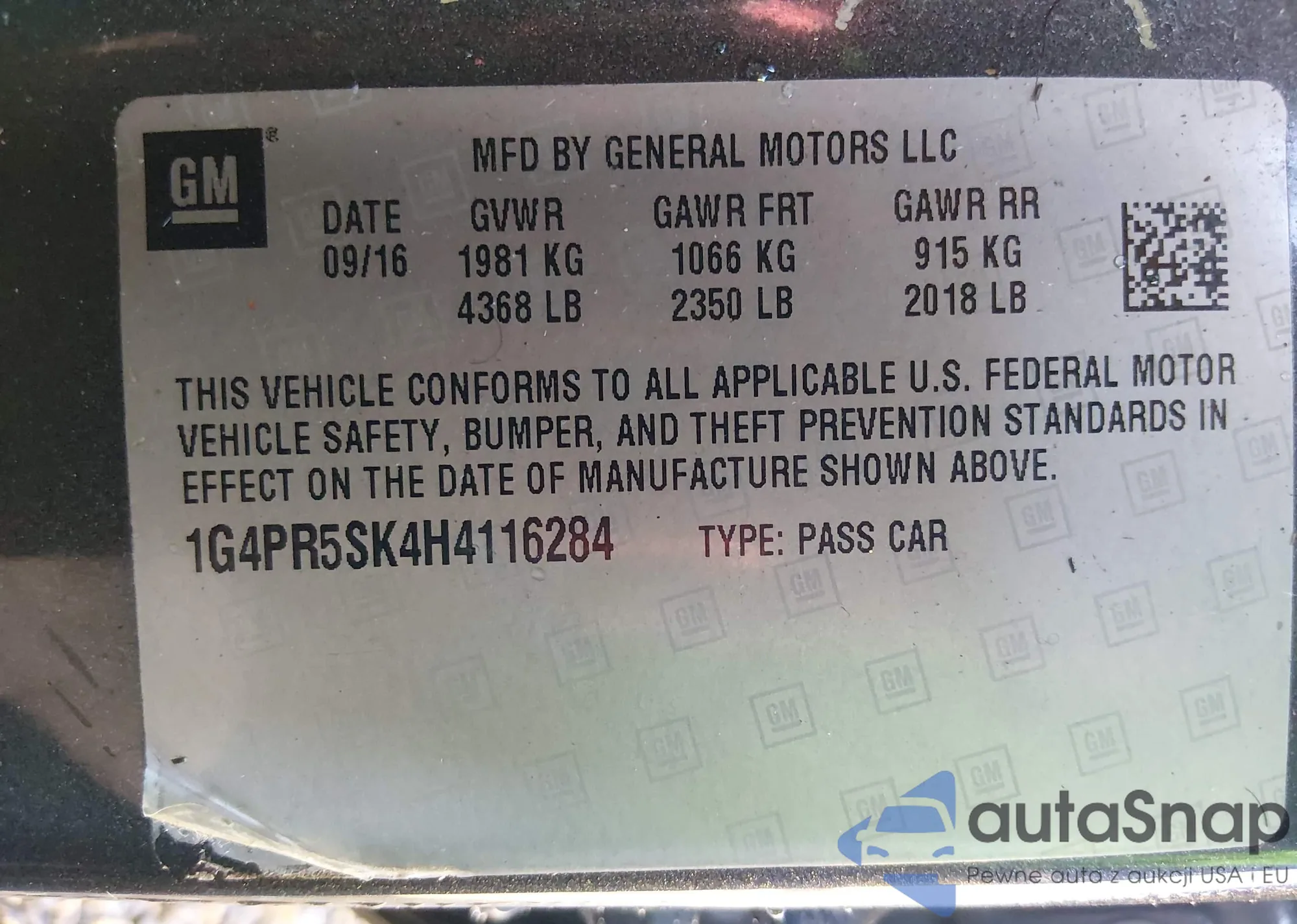 • VIN: 1G4PR5SK4H4116284