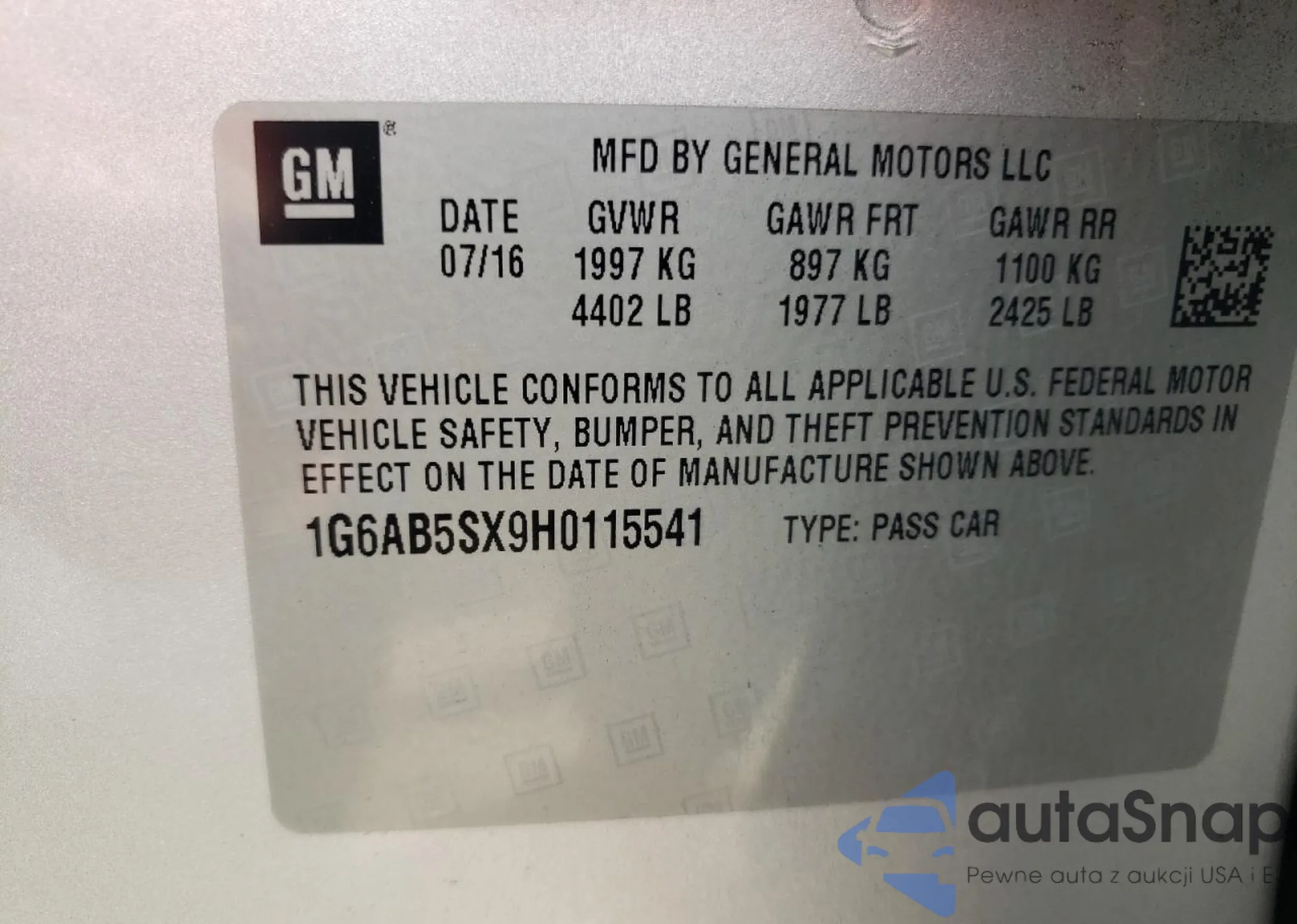 VIN: 1G6AB5SX9H0115541