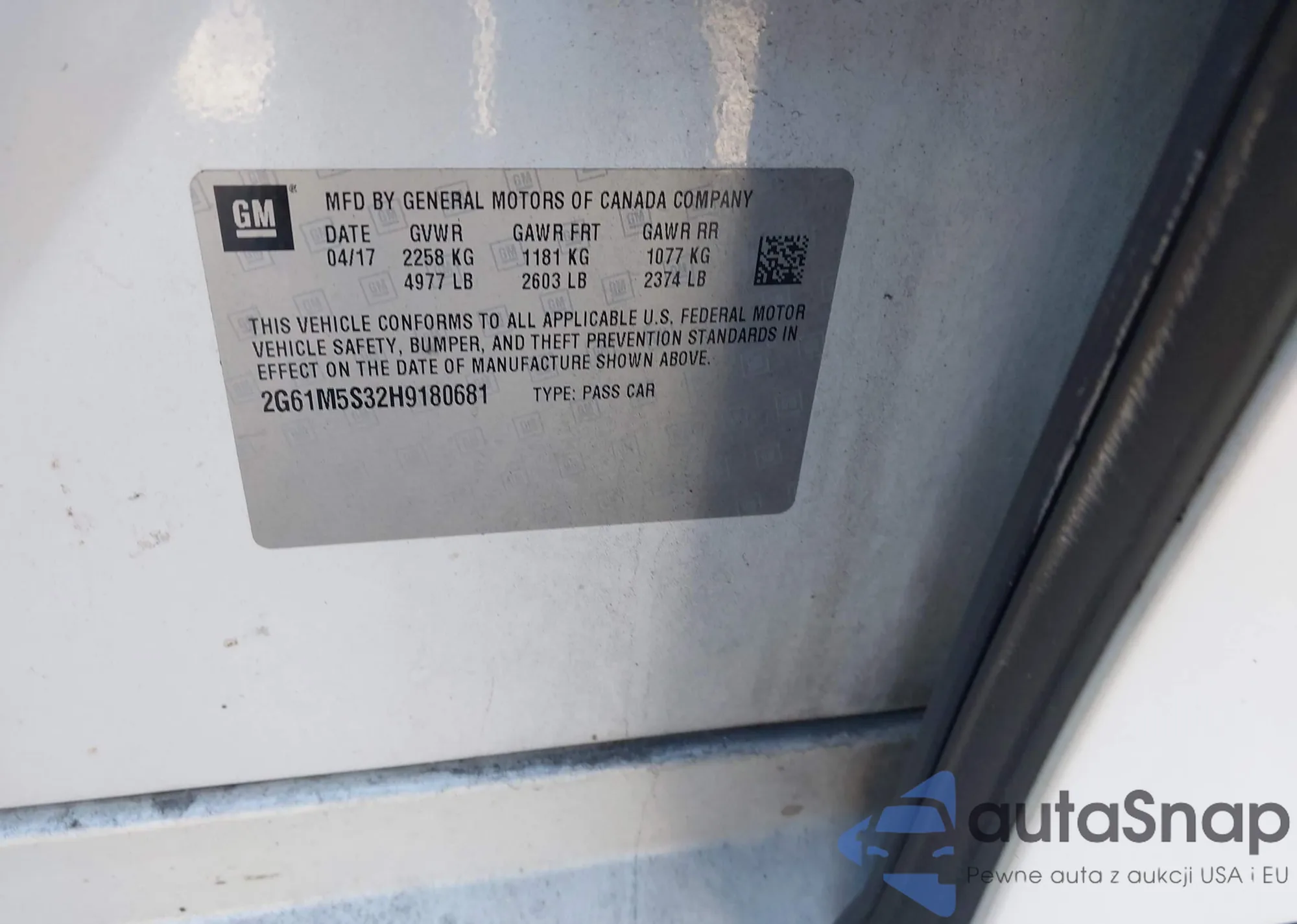 • VIN: 2G61M5S32H9180681