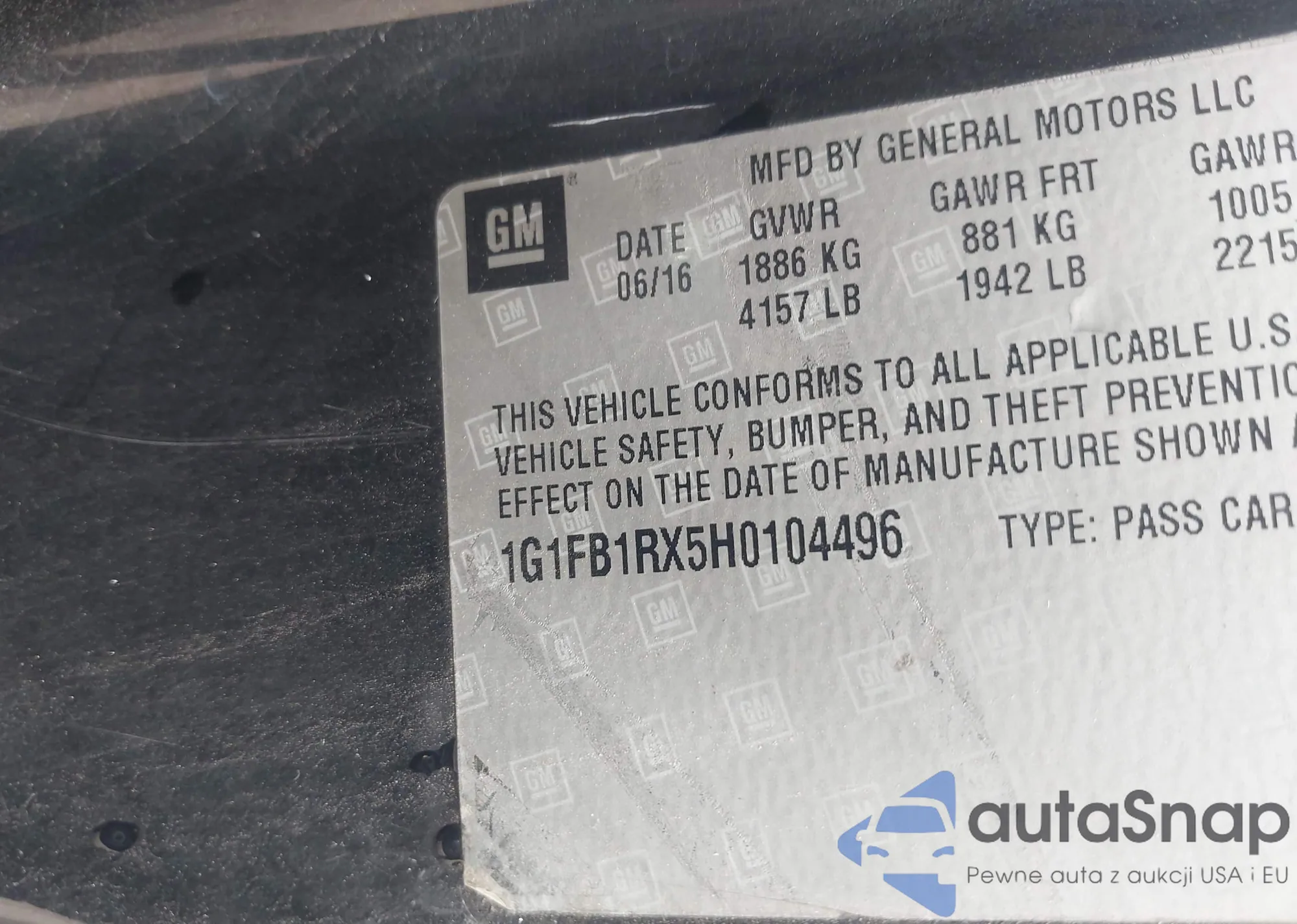 VIN: 1G1FF1R78H0158167
