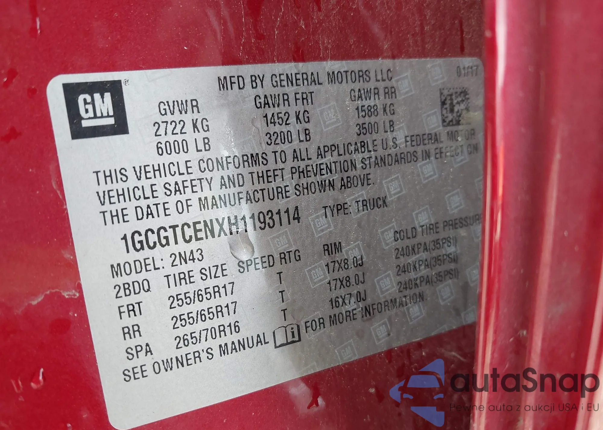 VIN: 1GCGTCENXH1193114