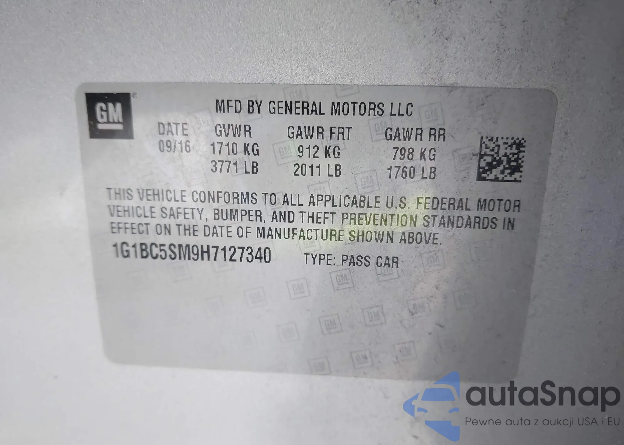 The car Chevrolet Cruze 2017 (VIN 1G1BC5SM9H7127340) is sold by an unverified seller. We recommend checking the Carfax report and confirming registration possibilities before purchase.