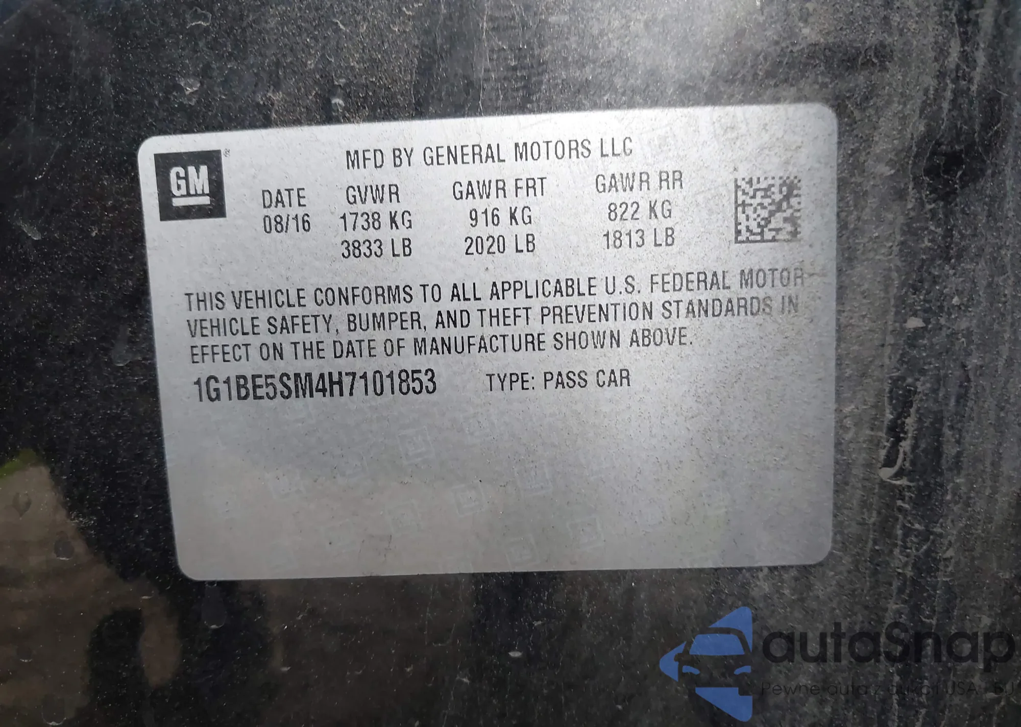 The car Chevrolet Cruze 2017 (VIN 1G1BE5SM4H7101853) has not been auctioned before. The documents are clean, and the mileage matches or is below the market average. Sold by an insurance company – we recommend purchase. Delivery to the port will take approx. 6–8 weeks.