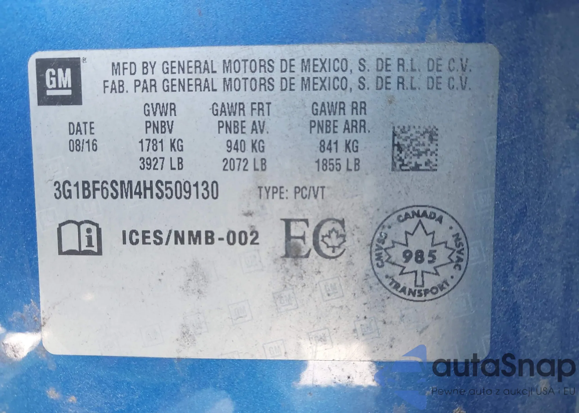 VIN: 3G1BF6SM4HS509130