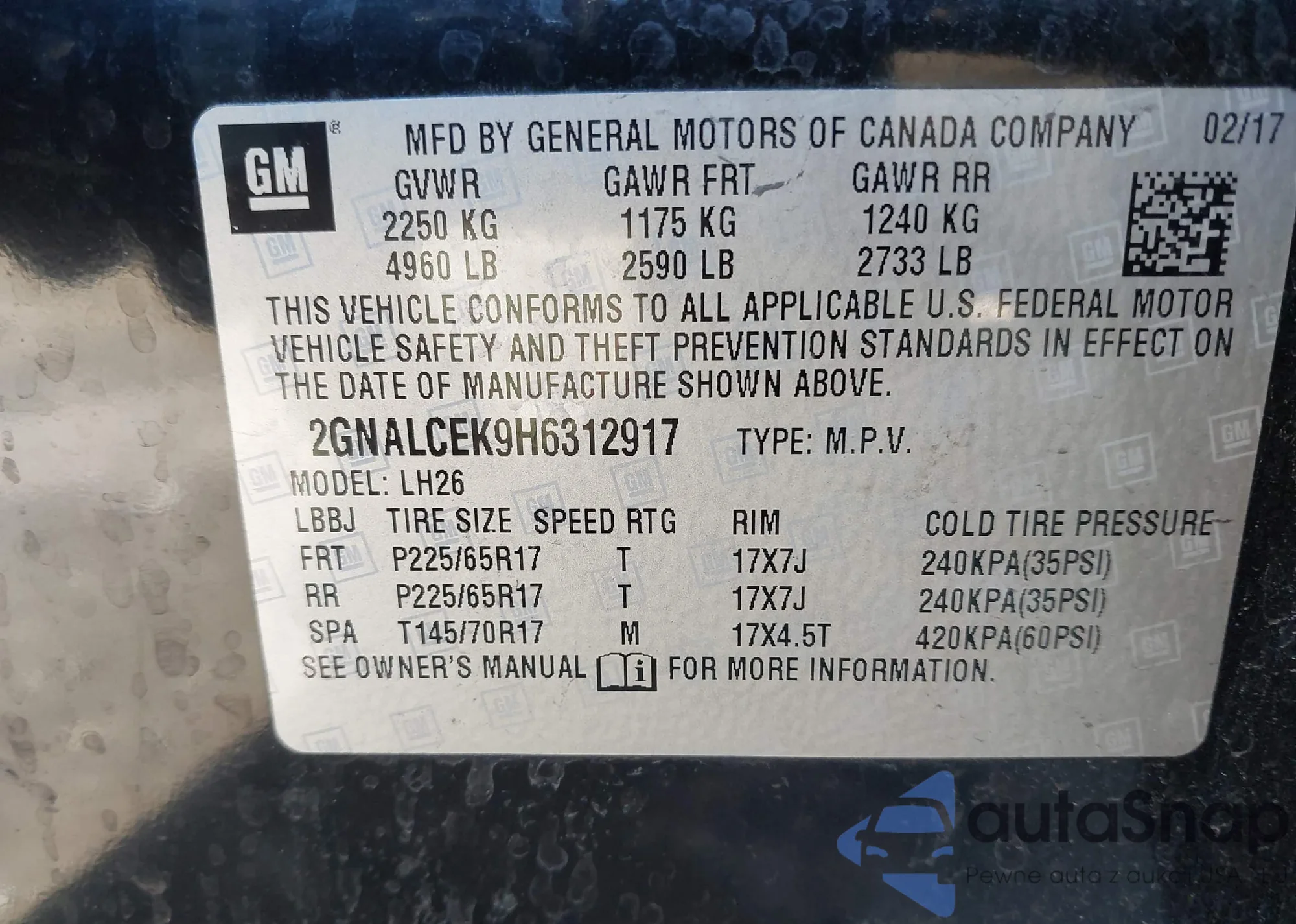 VIN: 2GNALCEK9H6312917