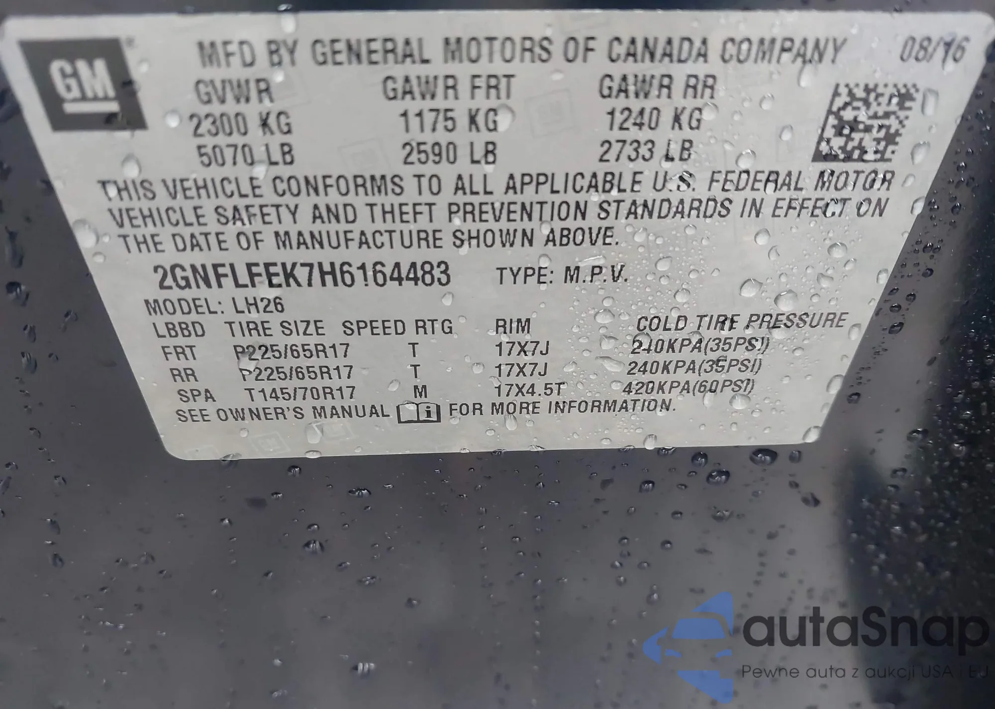 The car Chevrolet Equinox 2017 (VIN 2GNFLFEK7H6164483) has not been auctioned before. The documents are clean, and the mileage matches or is below the market average. Sold by an insurance company – we recommend purchase. Delivery to the port will take approx. 6–8 weeks.
