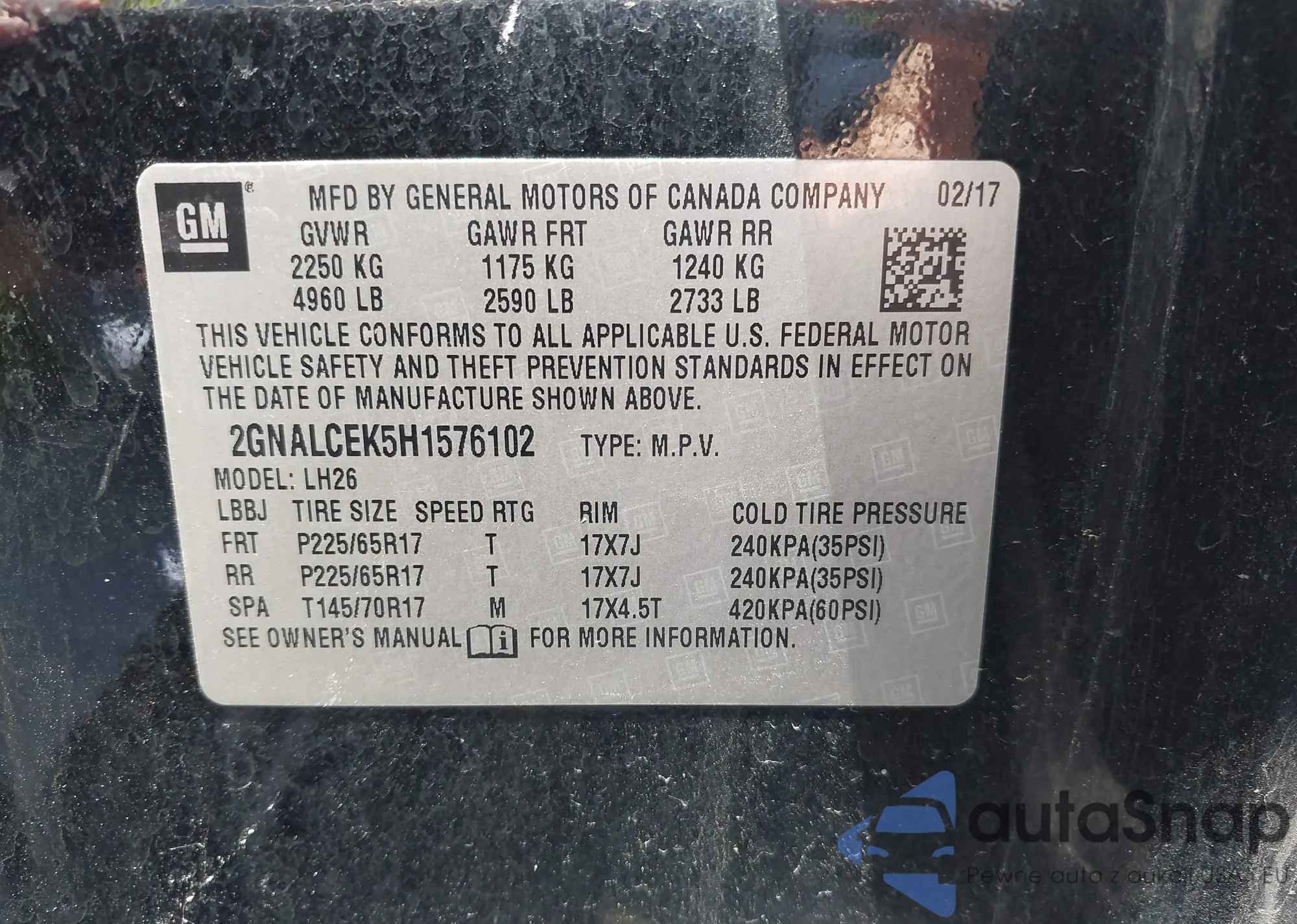 VIN: 2GNALCEK5H1576102