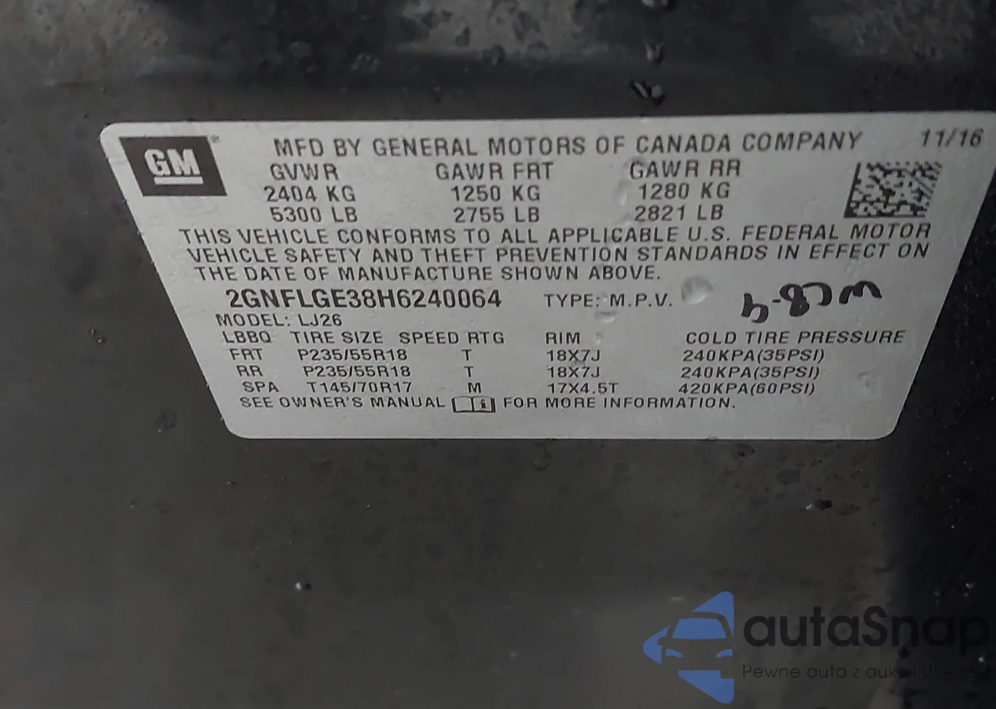 VIN: 2GNFLGE38H6240064