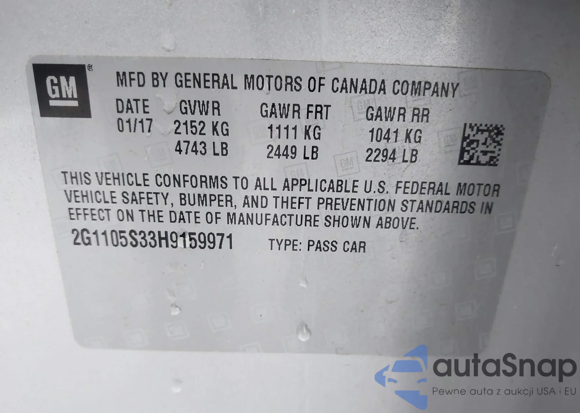 VIN: 2G1105S33H9159971