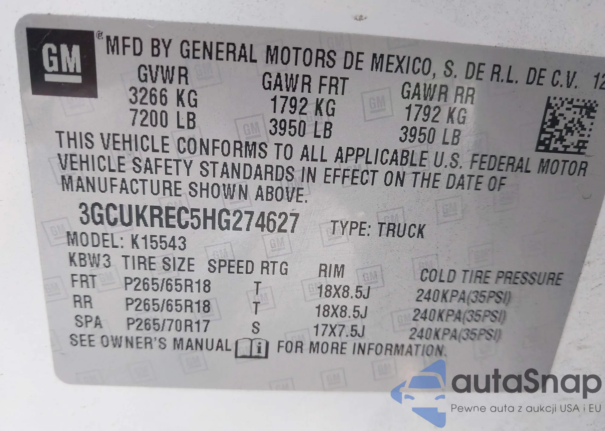 VIN: 3GCUKREC5HG274627