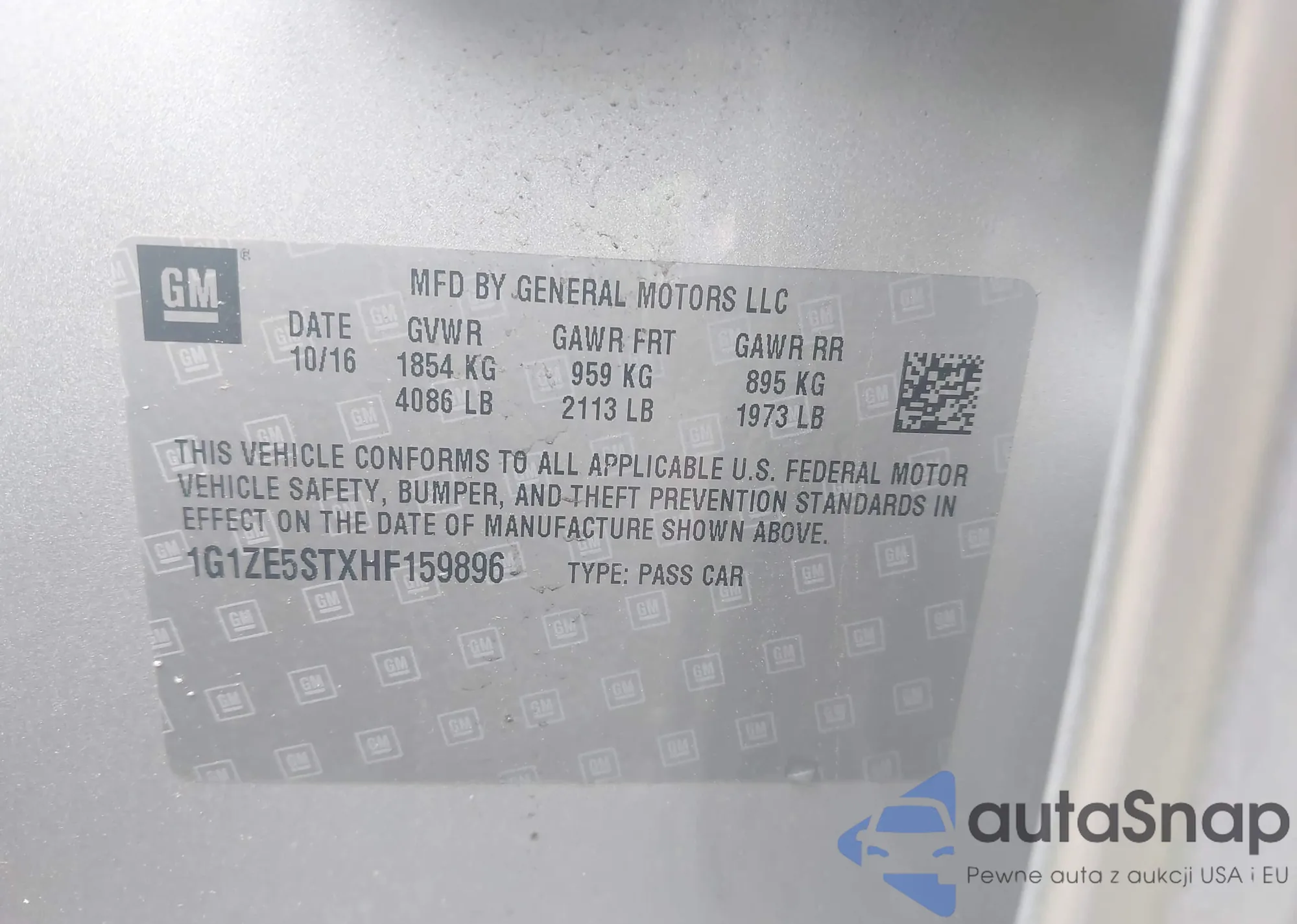The car Chevrolet Malibu 2017 (VIN 1G1ZE5STXHF159896) has not been auctioned before. The documents are clean, and the mileage matches or is below the market average. Sold by an insurance company – we recommend purchase. Delivery to the port will take approx. 6–8 weeks.