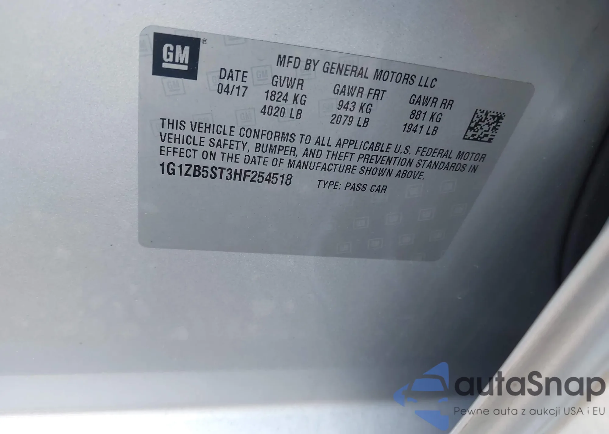 • VIN: 1G1ZB5ST3HF254518