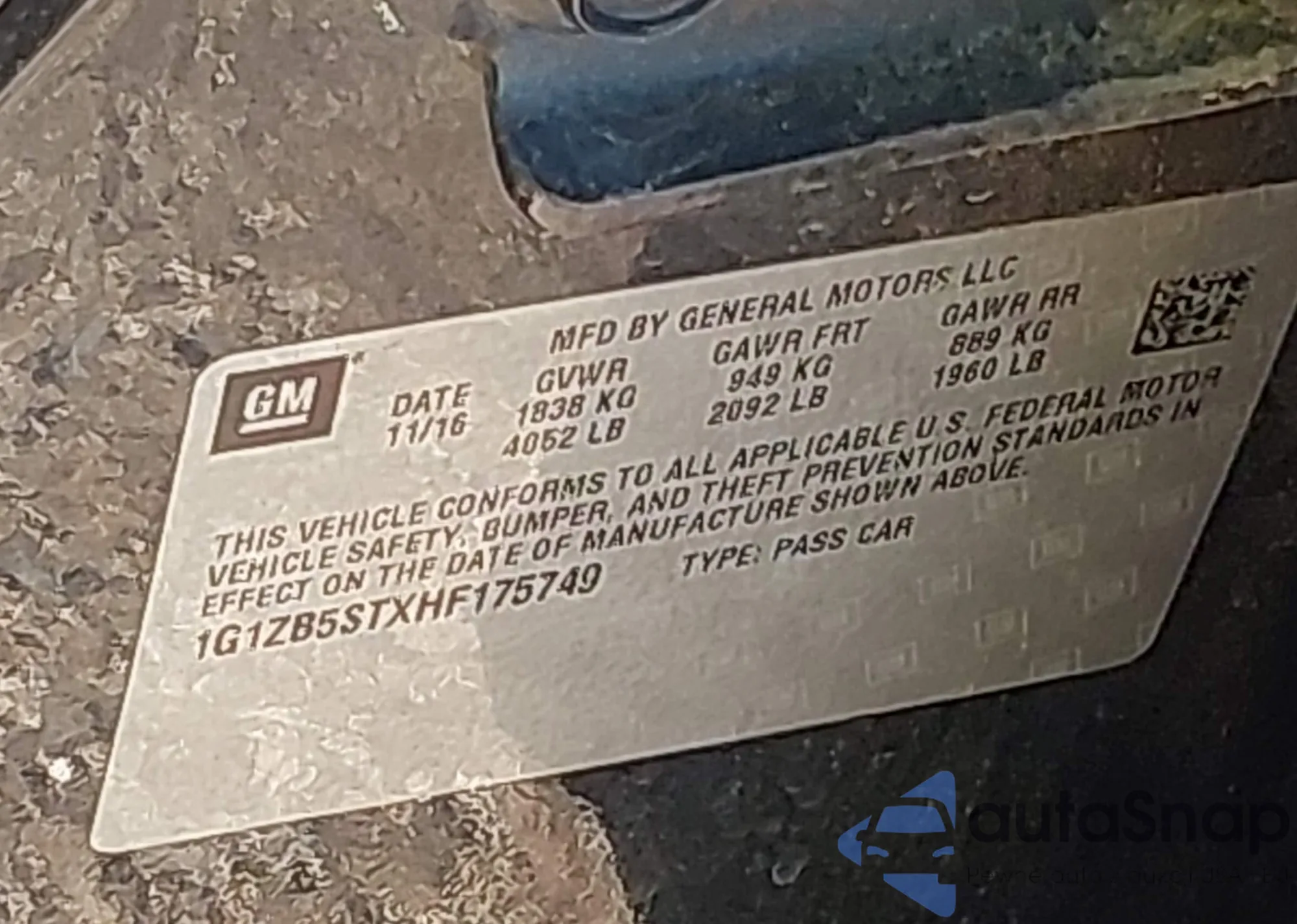 VIN: 1G1ZB5STXHF175749