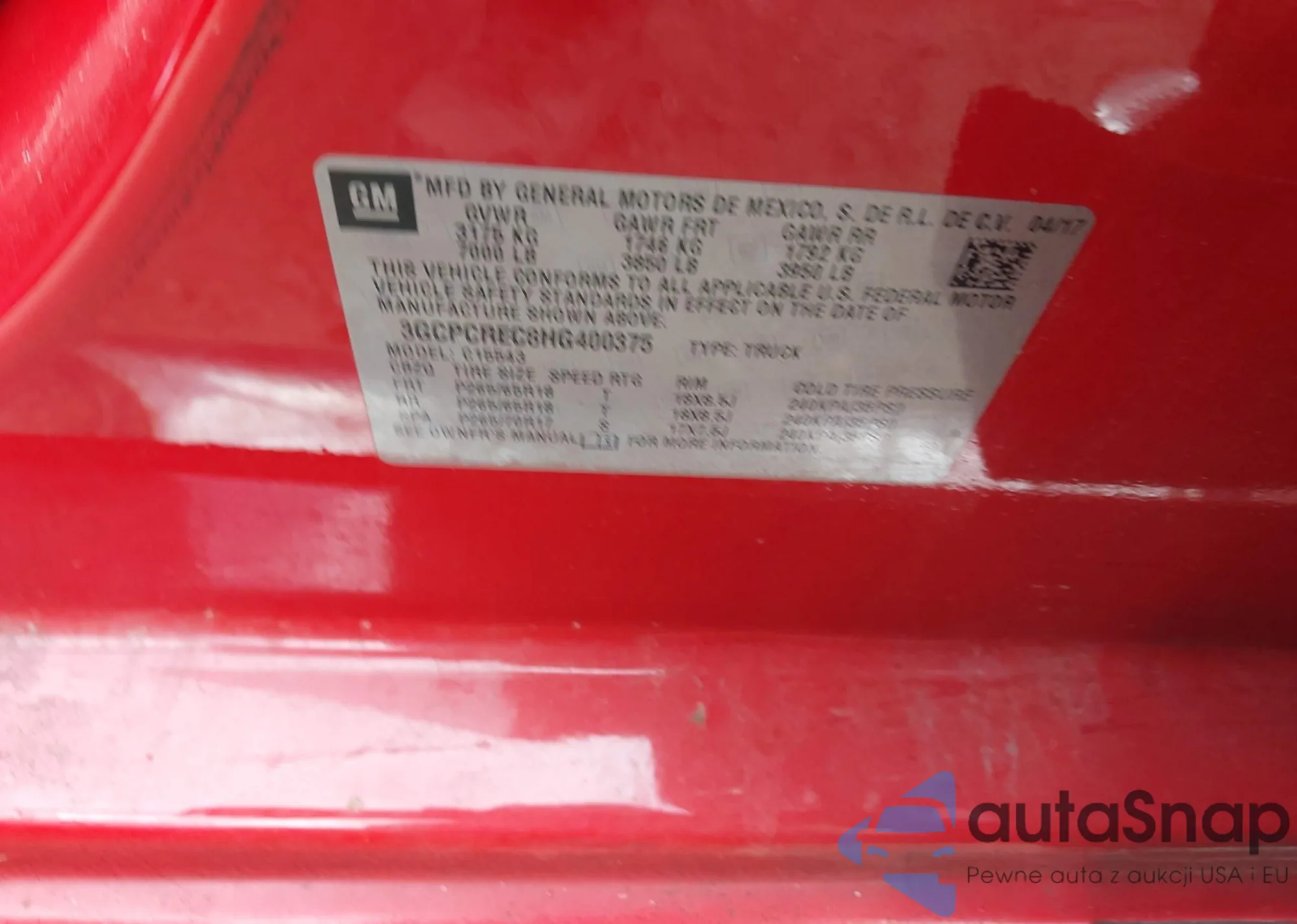 VIN: 3GCPCREC8HG400375