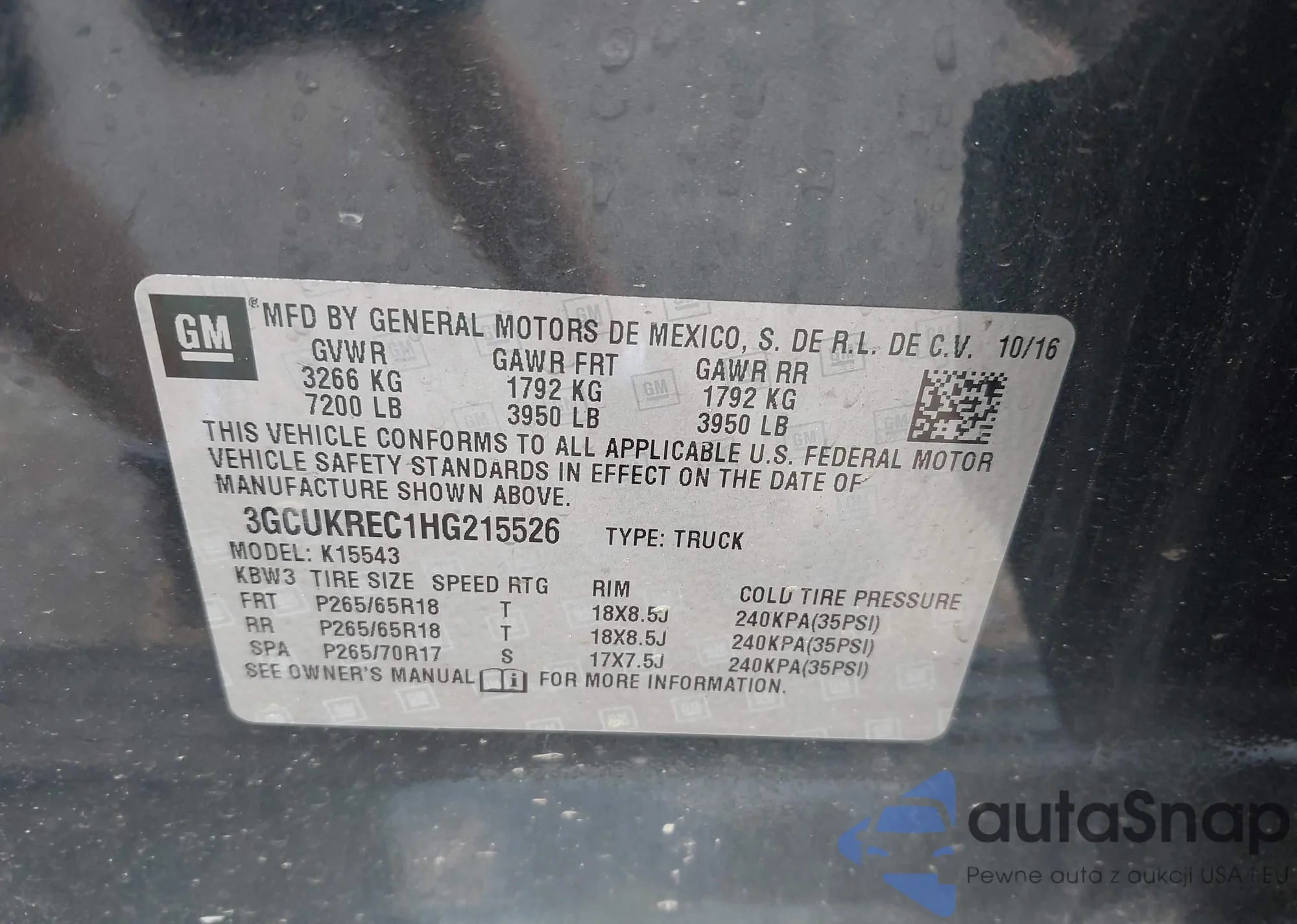 • VIN: 3GCUKREC1HG215526