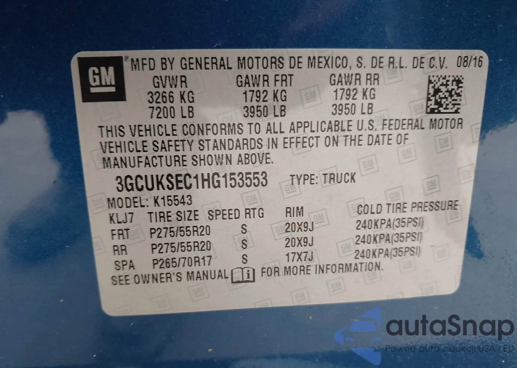 VIN: 3GCUKSEC1HG153553