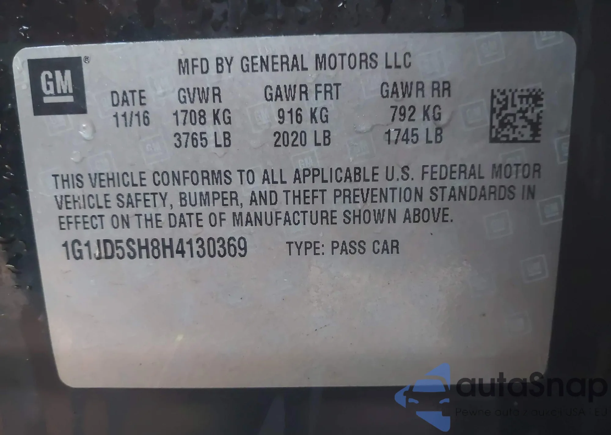 The car Chevrolet Sonic 2017 (VIN 1G1JD5SH8H4130369) has not been auctioned before. The documents are clean, and the mileage matches or is below the market average. Sold by an insurance company – we recommend purchase. Delivery to the port will take approx. 6–8 weeks.