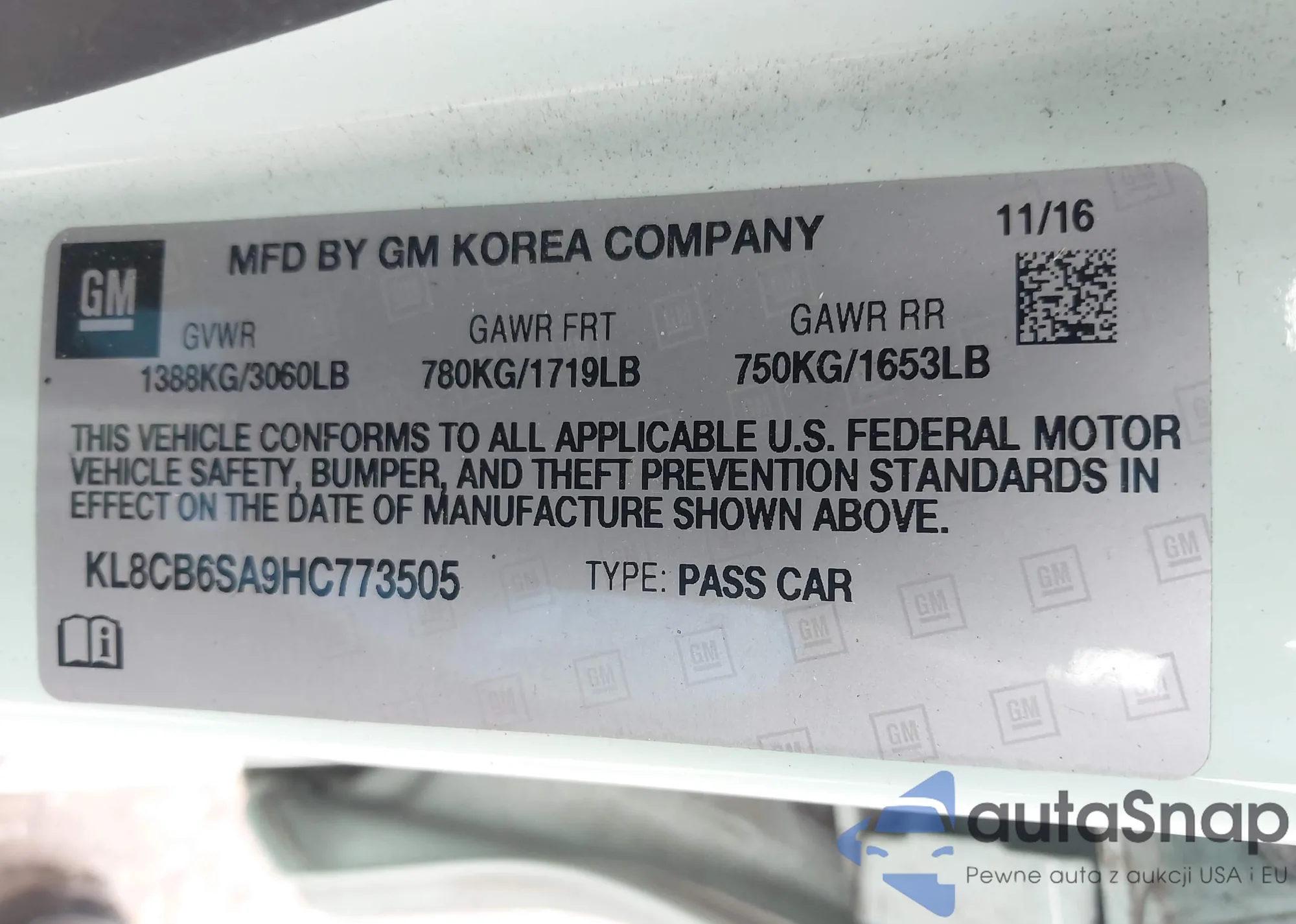 VIN: KL8CB6SA9HC773505