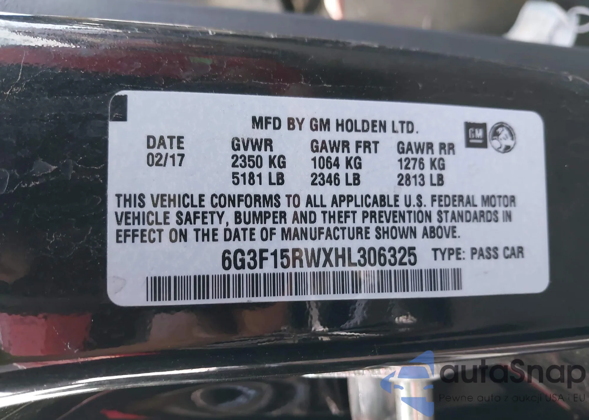 • VIN: 6G3F15RWXHL306325