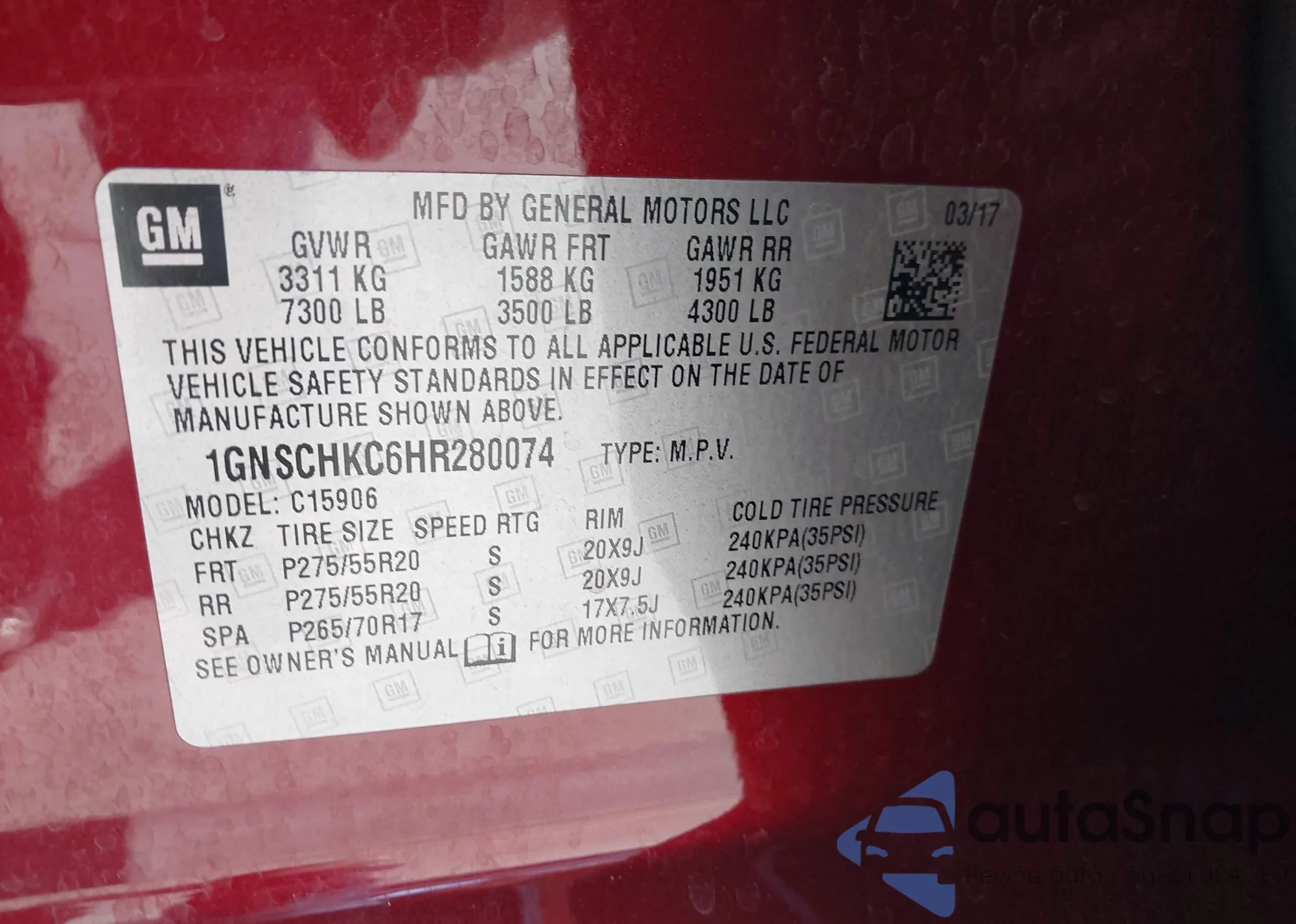VIN: 1GNSCHKC6HR280074