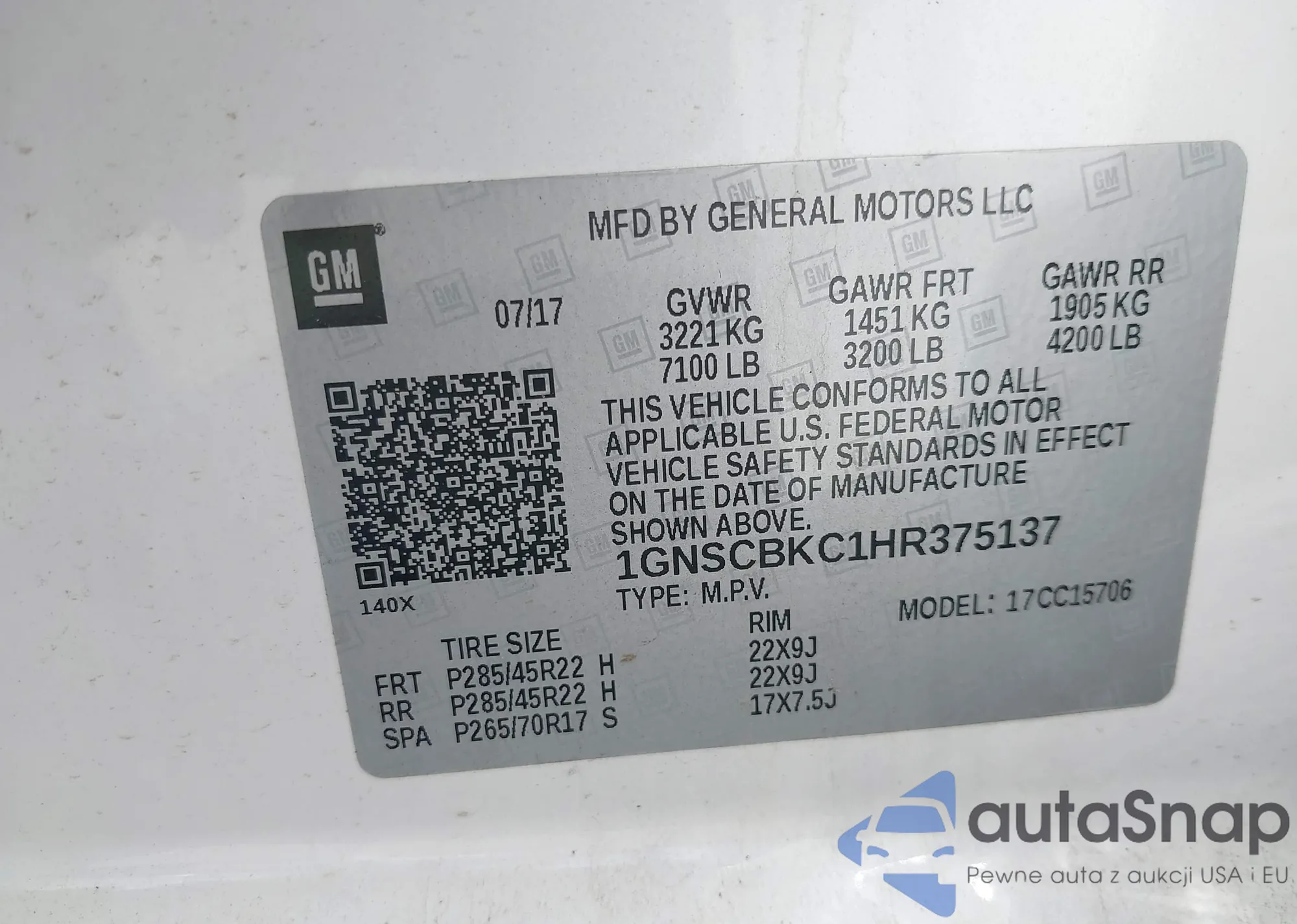 VIN: 1GNSCBKC1HR375137