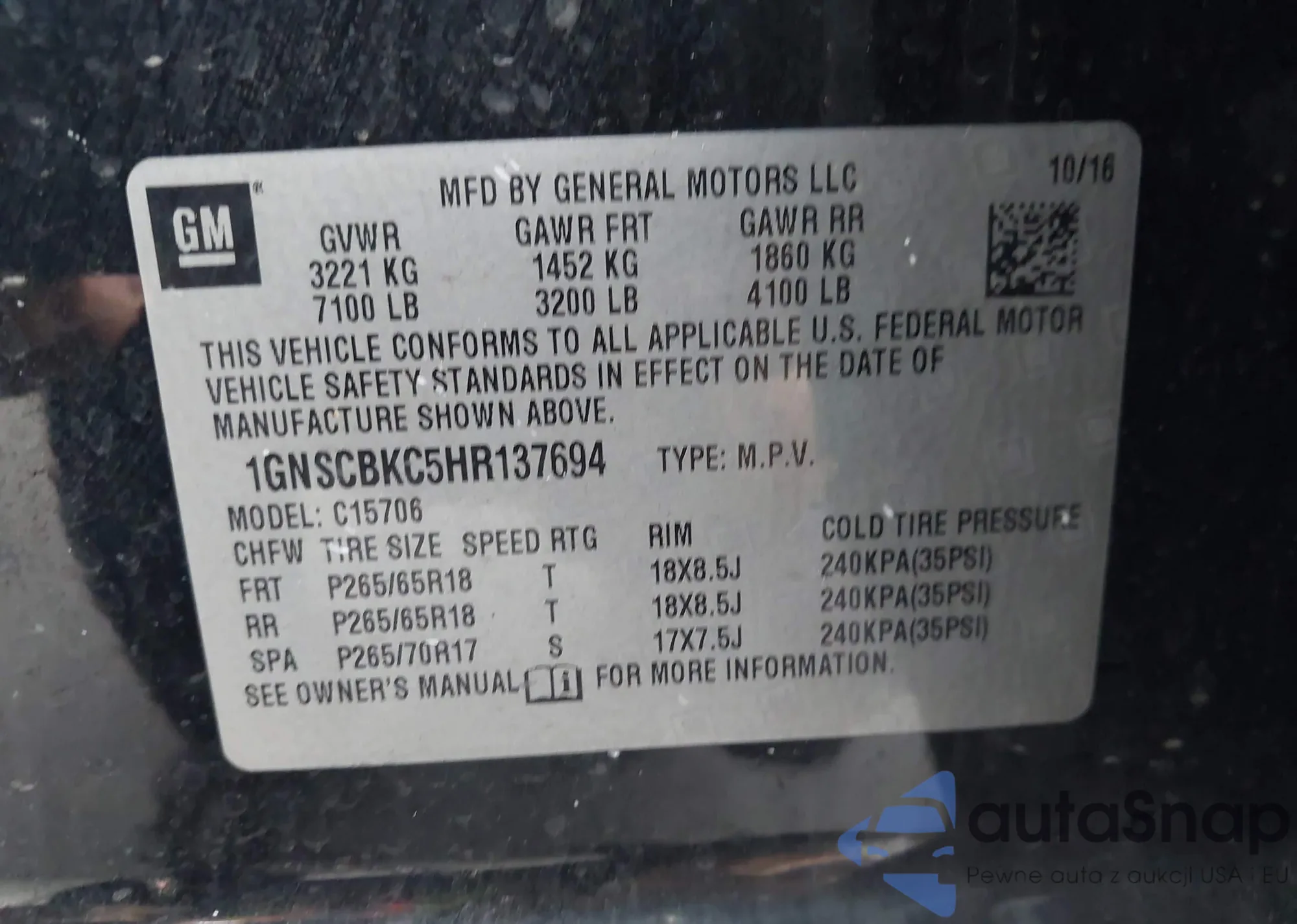 • VIN: 1GNSCBKC5HR137694