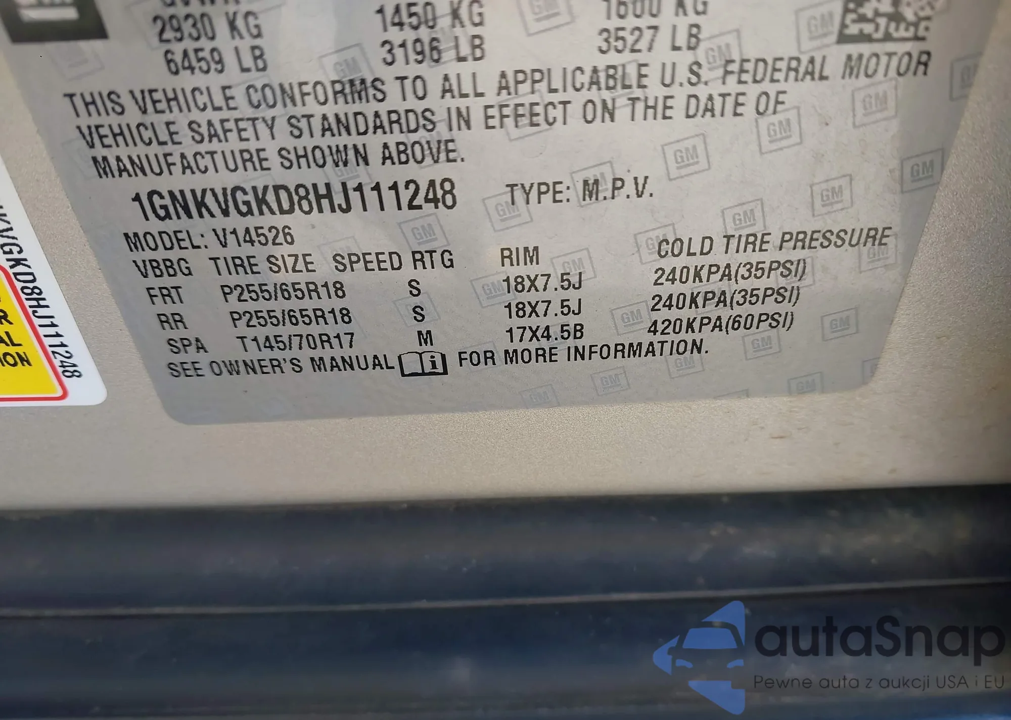 VIN: 1GNKVGKD8HJ111248
