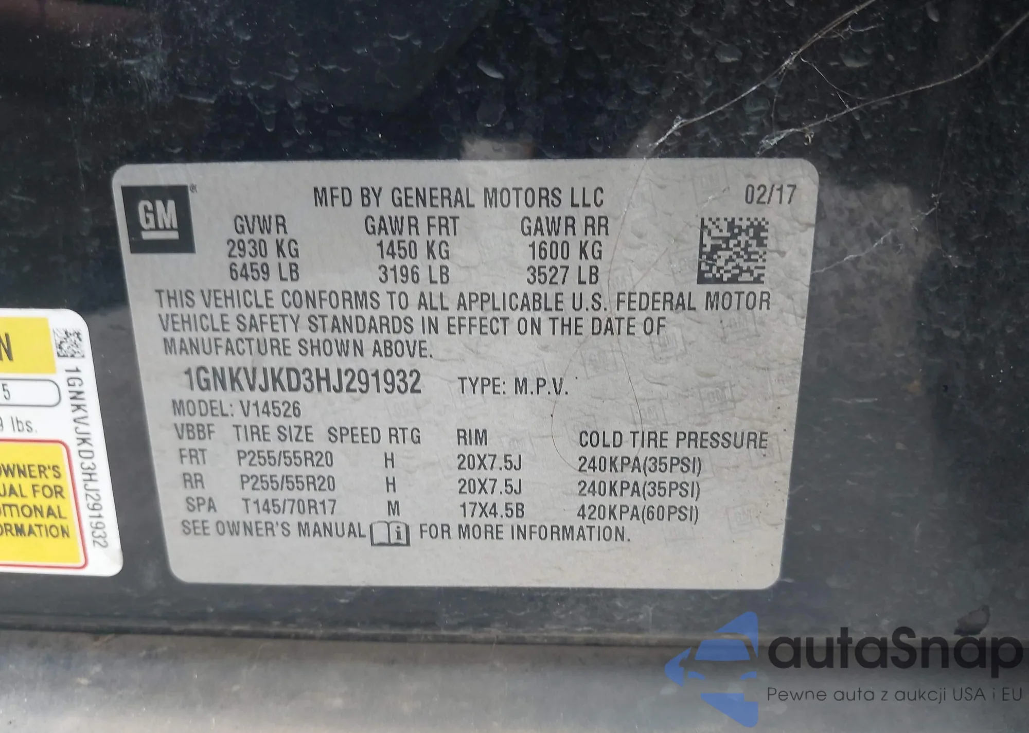 VIN: 1GNKVJKD3HJ291932