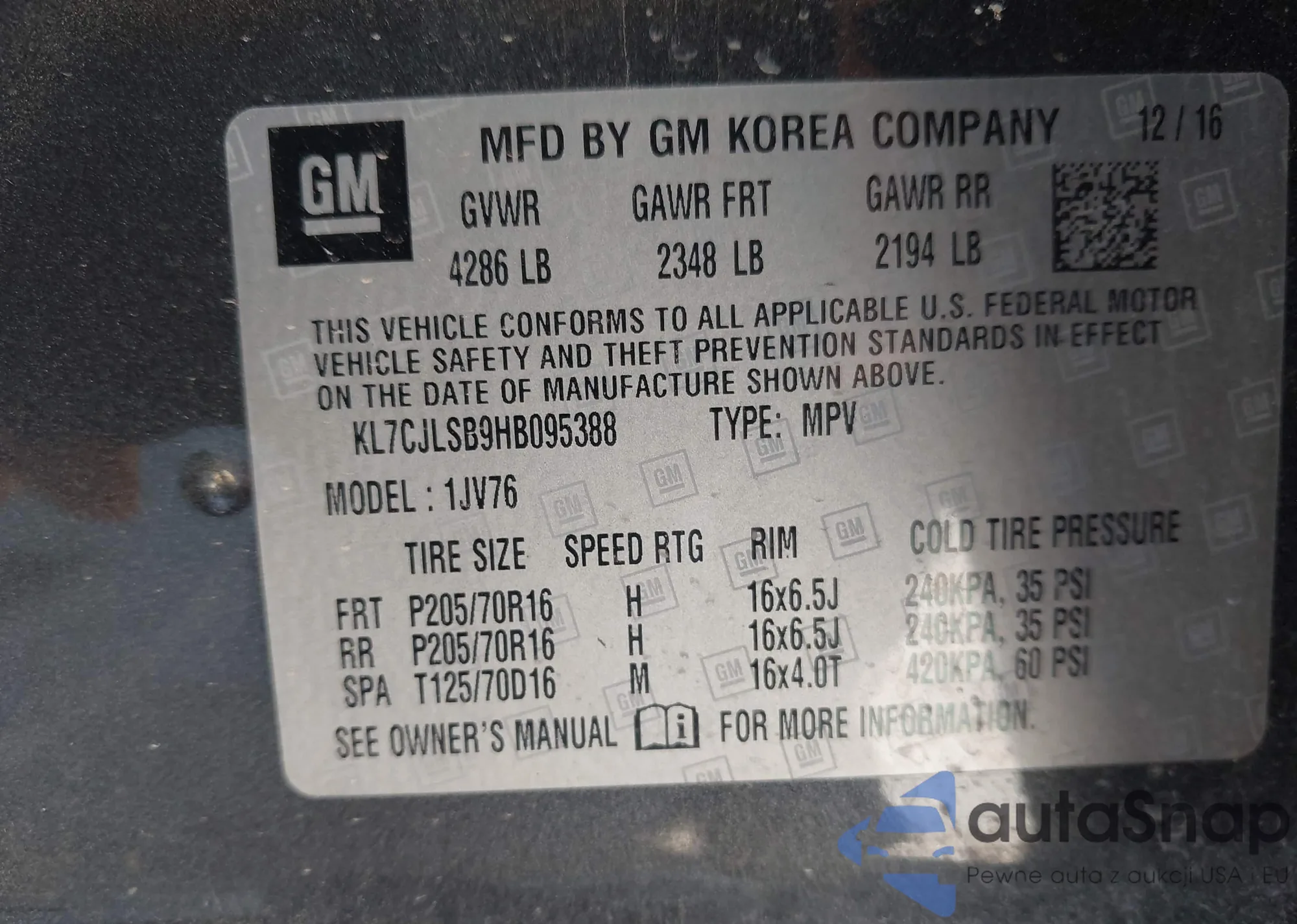 The car Chevrolet Trax 2017 (VIN KL7CJLSB9HB095388) is sold by an unverified seller. We recommend checking the Carfax report and confirming registration possibilities before purchase.