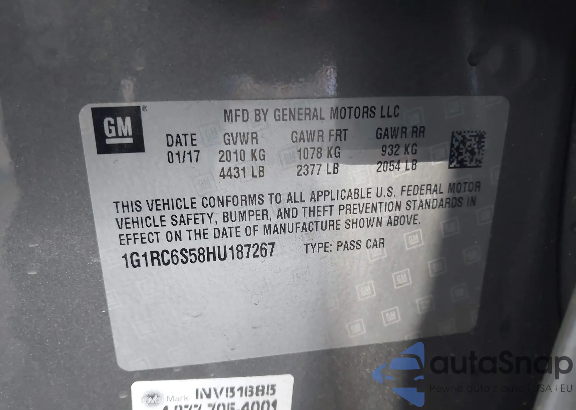 VIN: 1G1RC6S58HU187267