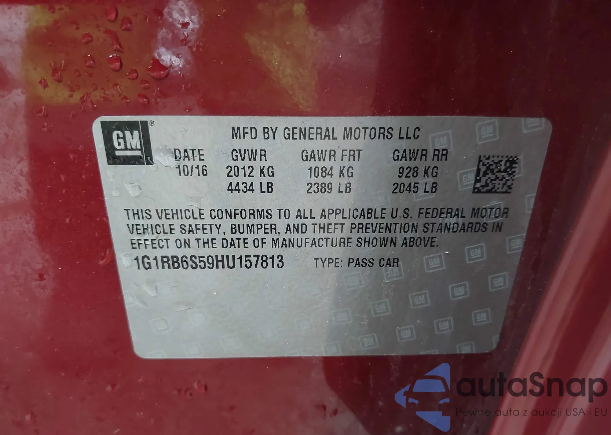 The car Chevrolet Volt 2017 (VIN 1G1RB6S59HU157813) has not been auctioned before. The documents are clean, and the mileage matches or is below the market average. Sold by an insurance company – we recommend purchase. Delivery to the port will take approx. 6–8 weeks.